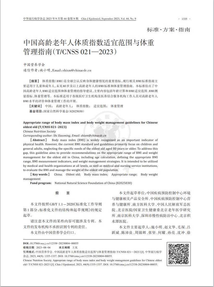“指南主要內(nèi)容包括年齡計(jì)算、體質(zhì)指數(shù)指標(biāo)測量、體質(zhì)指數(shù)適宜范圍確定、體重管理等,并提供適合高齡老年人的膳食營養(yǎng)、身體活動(dòng)等可干預(yù)因素的指導(dǎo)建議?!笔┬∶鹘榻B。