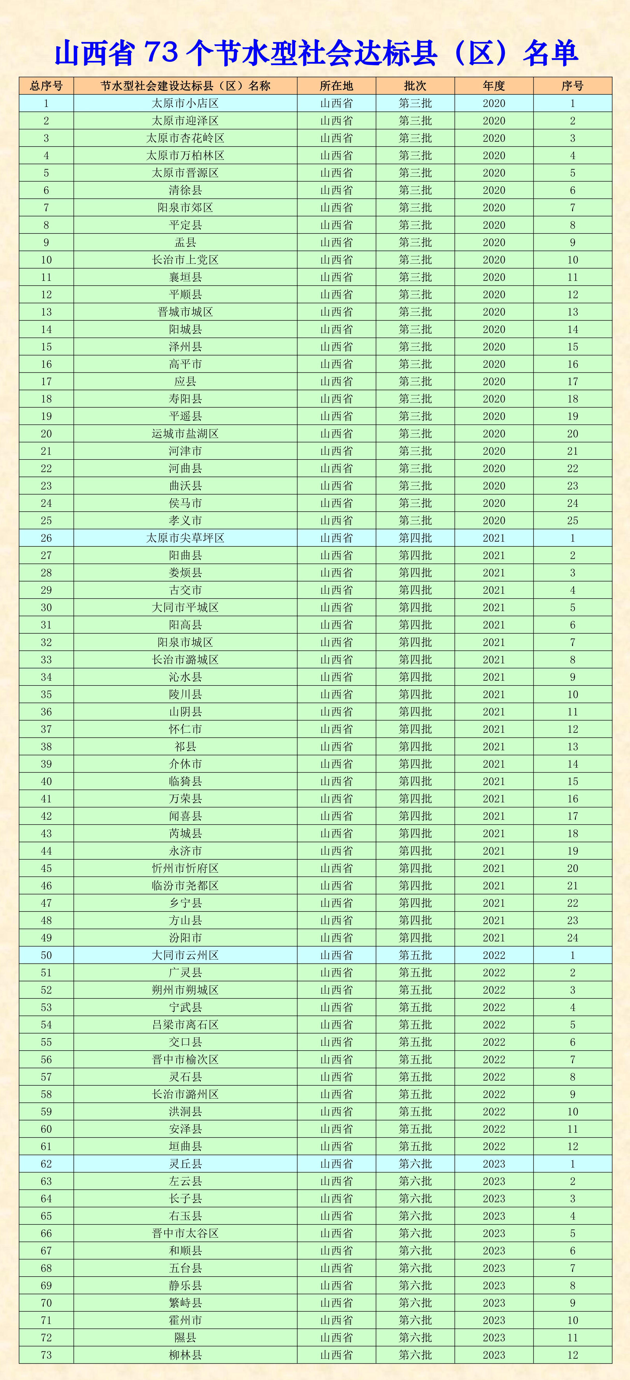 山西省73個(gè)節(jié)水型社會(huì)達(dá)標(biāo)縣(區(qū))名單