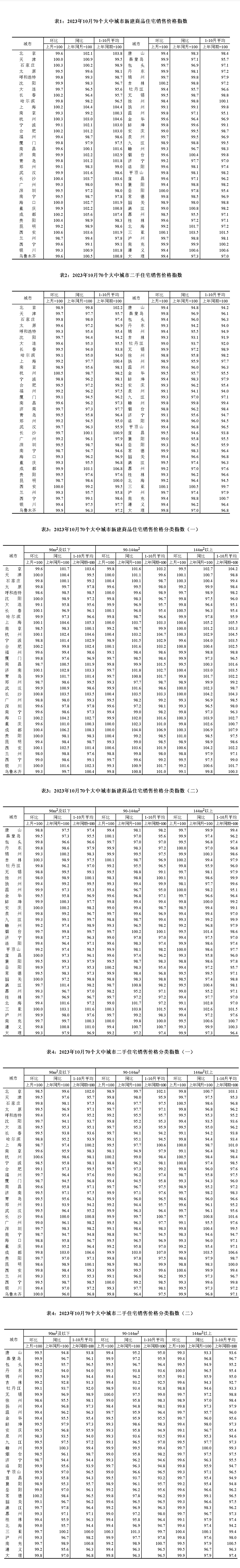 11月16日,國(guó)家統(tǒng)計(jì)局發(fā)布數(shù)據(jù)顯示,2023年10月份,70個(gè)大中城市商品住宅銷售價(jià)格環(huán)比下降城市個(gè)數(shù)略增,各線城市商品住宅銷售價(jià)格環(huán)比下降、同比漲跌互現(xiàn)。其中,新建商品住宅和二手住宅銷售價(jià)格環(huán)比下降城市分別有56個(gè)和67個(gè),均比上月增加2個(gè);新建商品住宅銷售價(jià)格同比下降城市有47個(gè),比上月增加2個(gè);二手住宅同比下降城市有67個(gè),個(gè)數(shù)與上月相同。