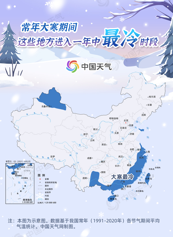 不過,從各區(qū)域平均氣溫來看,也有不少地方是在大寒節(jié)氣達到全年最低,比如華東和華南沿海、新疆北部、山東半島局地部分地區(qū),總體而言,南方冷在大寒的區(qū)域相對更多一些。
