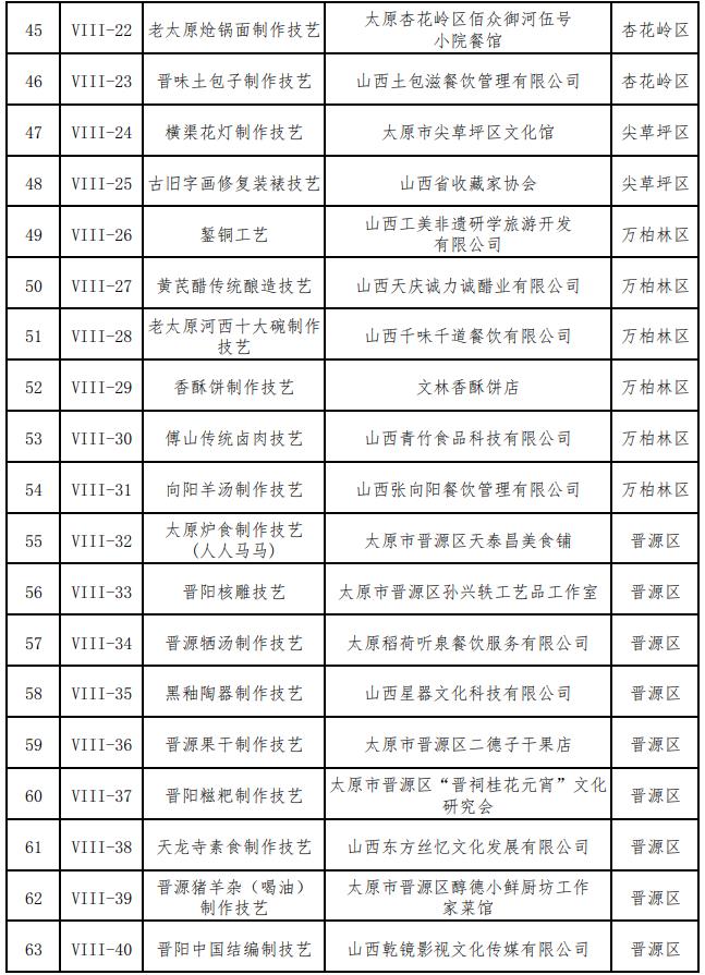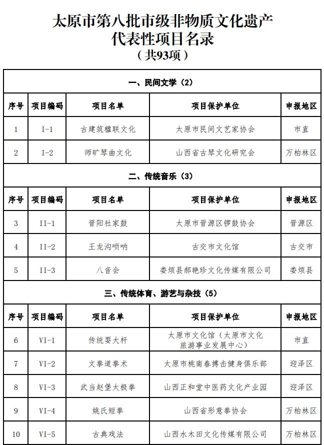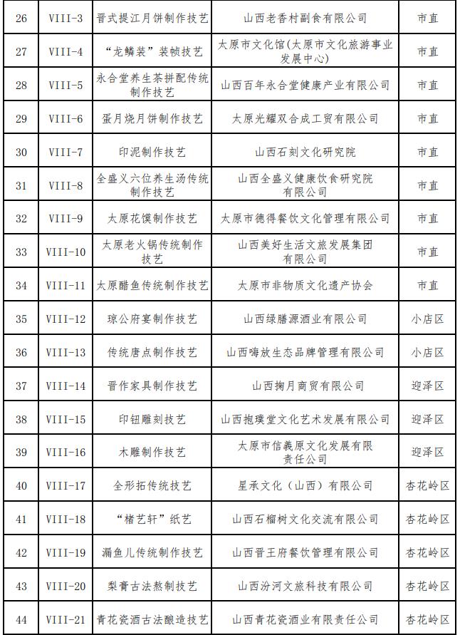 太原市第八批市級非物質(zhì)文化遺產(chǎn)代表性項目名錄