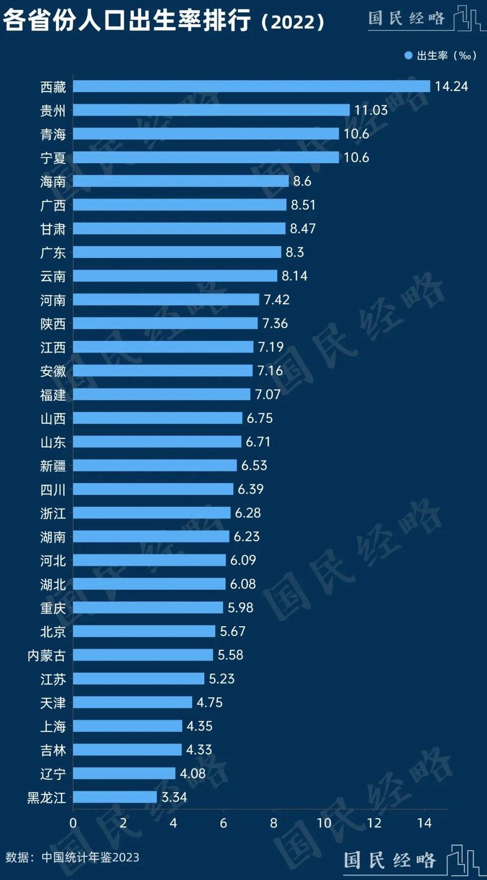 不難看出,出生率最高的省份——西藏、寧夏、青海、貴州,均位于西部欠發(fā)達(dá)地區(qū),歷來都是生育率最高的地方。