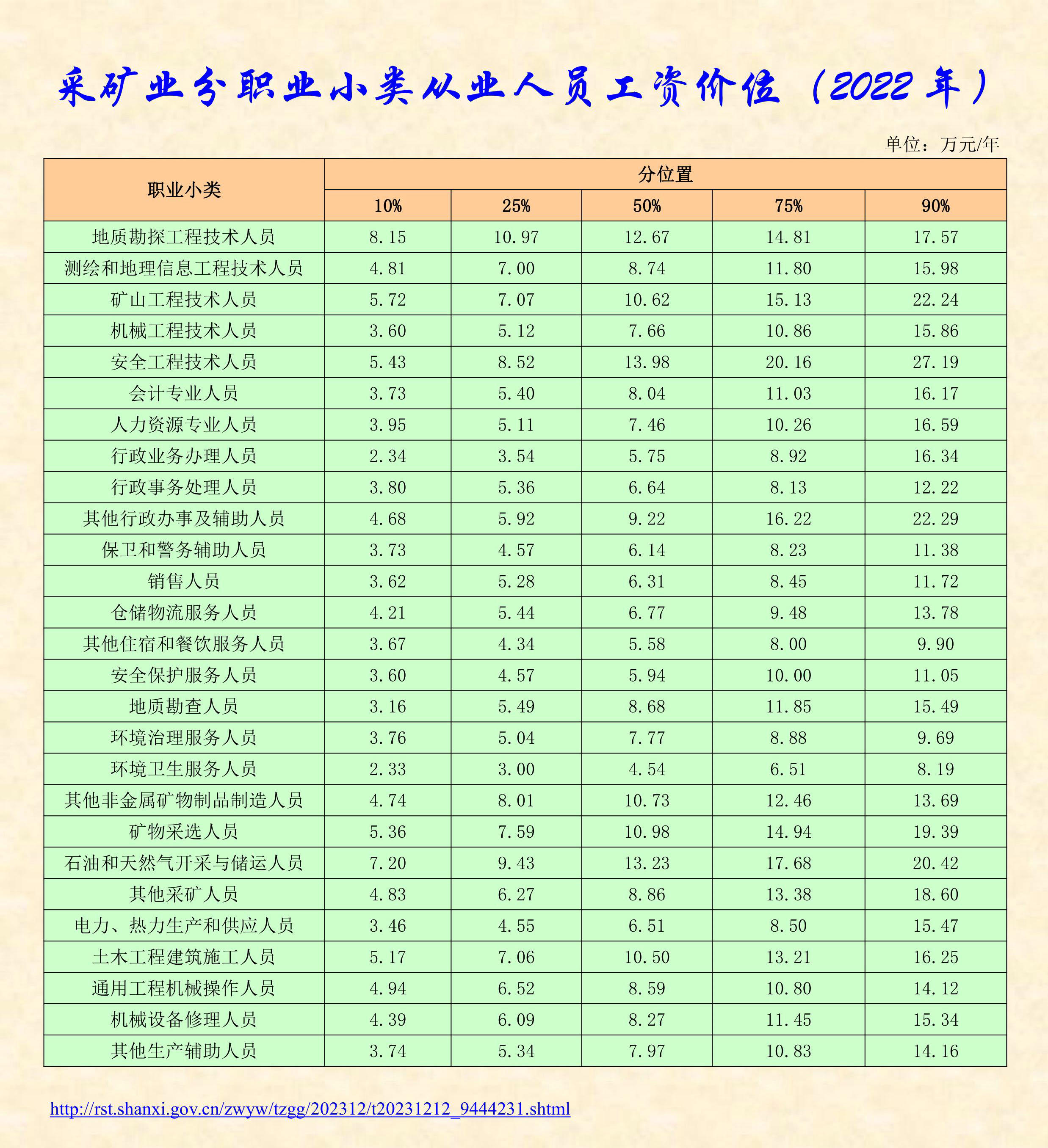 企業(yè)薪酬調查是以企業(yè)中不同職業(yè)從業(yè)人員工資報酬水平和不同行業(yè)企業(yè)人工成本狀況為調查內容的抽樣調查,以期反映我國勞動力市場價格狀況。本篇資料的內容主要包括我省不同職業(yè)從業(yè)人員工資價位、不同崗位等級從業(yè)人員工資價位、采礦業(yè)不同職業(yè)小類從業(yè)人員工資價位數(shù)據(jù)。