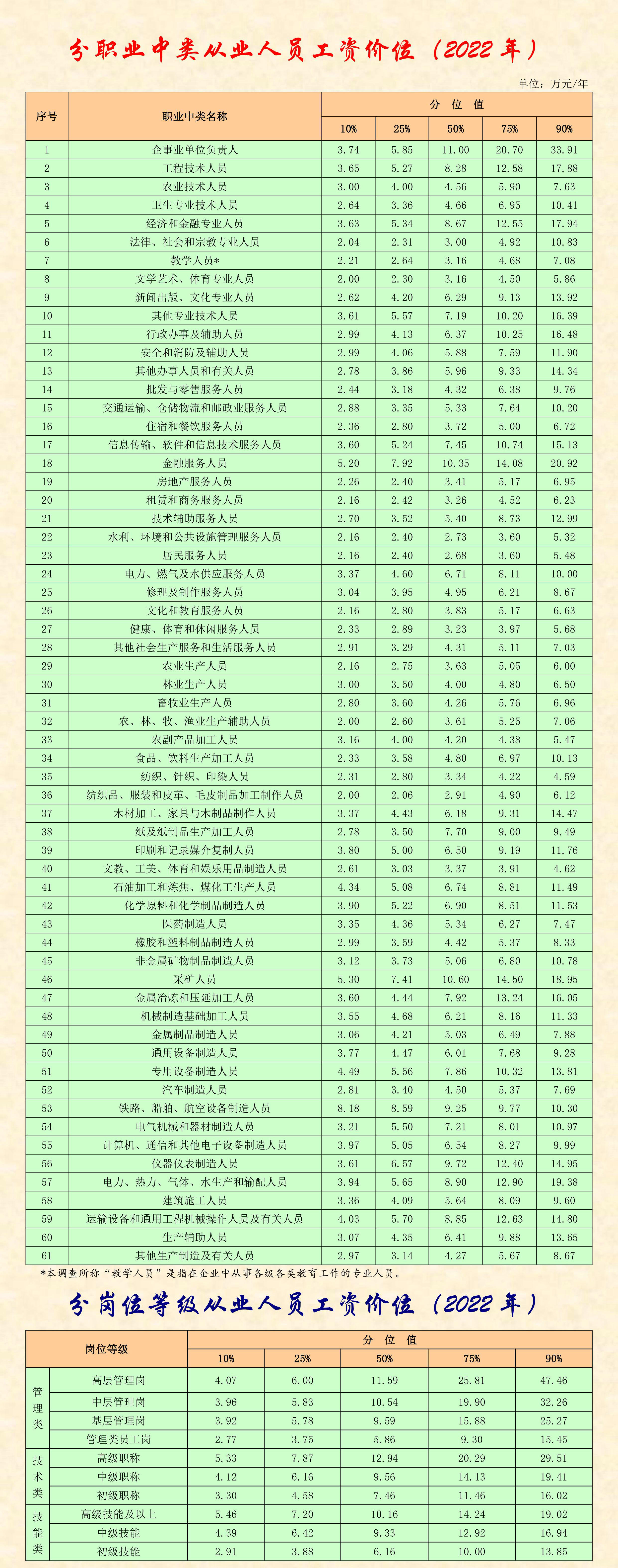 本調查的職業(yè)按《中華人民共和國職業(yè)分類大典(2022年版)》的職業(yè)中類、職業(yè)小類劃分。