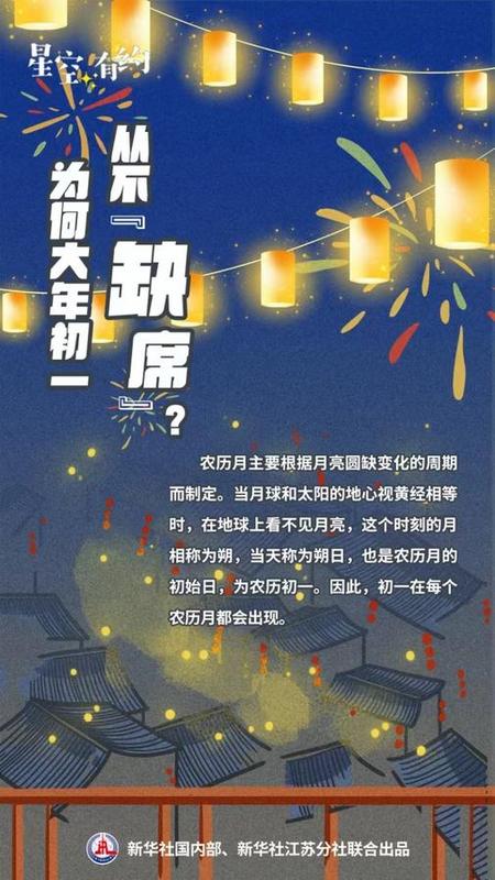 “出現(xiàn)這樣的情況,與我國農(nóng)歷歷算規(guī)則有關(guān)。我國農(nóng)歷歷法中,農(nóng)歷月主要是根據(jù)月亮圓缺變化的周期而制定?!敝袊茖W(xué)院紫金山天文臺(tái)科普主管王科超說,月球繞地球轉(zhuǎn)動(dòng)一周的過程中,從地球上看,月亮呈現(xiàn)出不同相貌。當(dāng)月球和太陽的地心視黃經(jīng)相等時(shí),在地球上看不見月亮,這個(gè)時(shí)刻的月相稱為朔,當(dāng)天稱為朔日,是每個(gè)農(nóng)歷月的初始日,稱為農(nóng)歷初一。因此,初一在每個(gè)農(nóng)歷月都會(huì)出現(xiàn)。