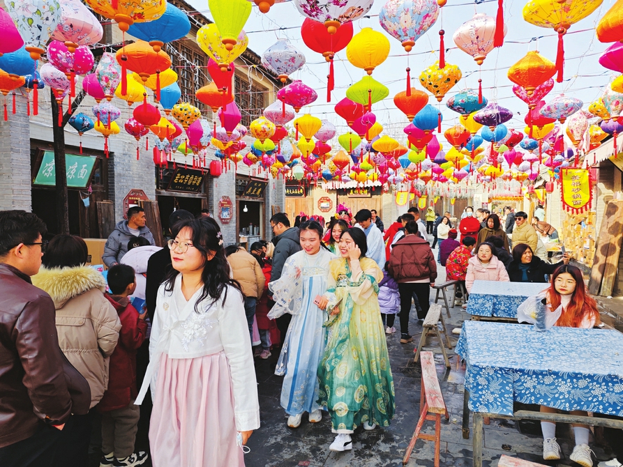 大年初一,游人穿梭于周倉文化園景區(qū),沉浸式體驗(yàn)春節(jié)期間的別樣快樂。(周明飛攝)