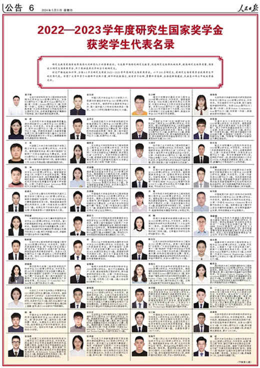 經(jīng)過嚴(yán)格選拔和評審,全國4.5萬名研究生榮獲2022—2023學(xué)年度研究生國家獎學(xué)金。以下100名研究生,是研究生國家獎學(xué)金獲獎學(xué)生中的優(yōu)秀代表。希望廣大青年學(xué)子從榜樣中汲取力量,樹牢科技報國志,刻苦學(xué)習(xí)鉆研,勇攀科學(xué)高峰,在推進(jìn)強(qiáng)國建設(shè)、民族復(fù)興偉業(yè)中綻放青春光彩。