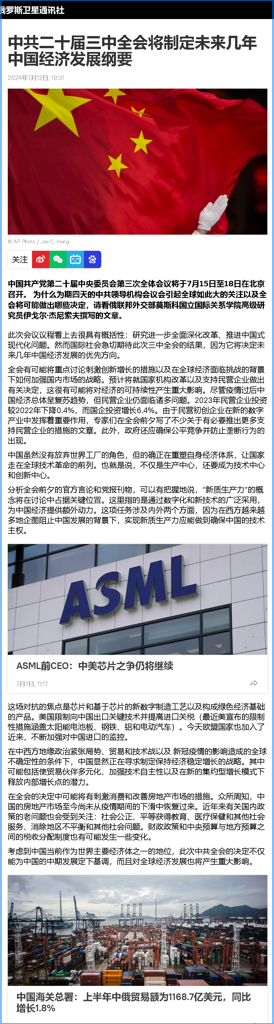 中國(guó)共產(chǎn)黨第二十屆中央委員會(huì)第三次全體會(huì)議將于7月15日至18日在北京召開(kāi)。 為什么為期四天的中共領(lǐng)導(dǎo)機(jī)構(gòu)會(huì)議會(huì)引起全球如此大的關(guān)注以及全會(huì)將可能做出哪些決定,請(qǐng)看俄聯(lián)邦外交部莫斯科國(guó)立國(guó)際關(guān)系學(xué)院高級(jí)研究員伊戈?duì)枴そ苣崴鞣蜃珜?xiě)的文章。