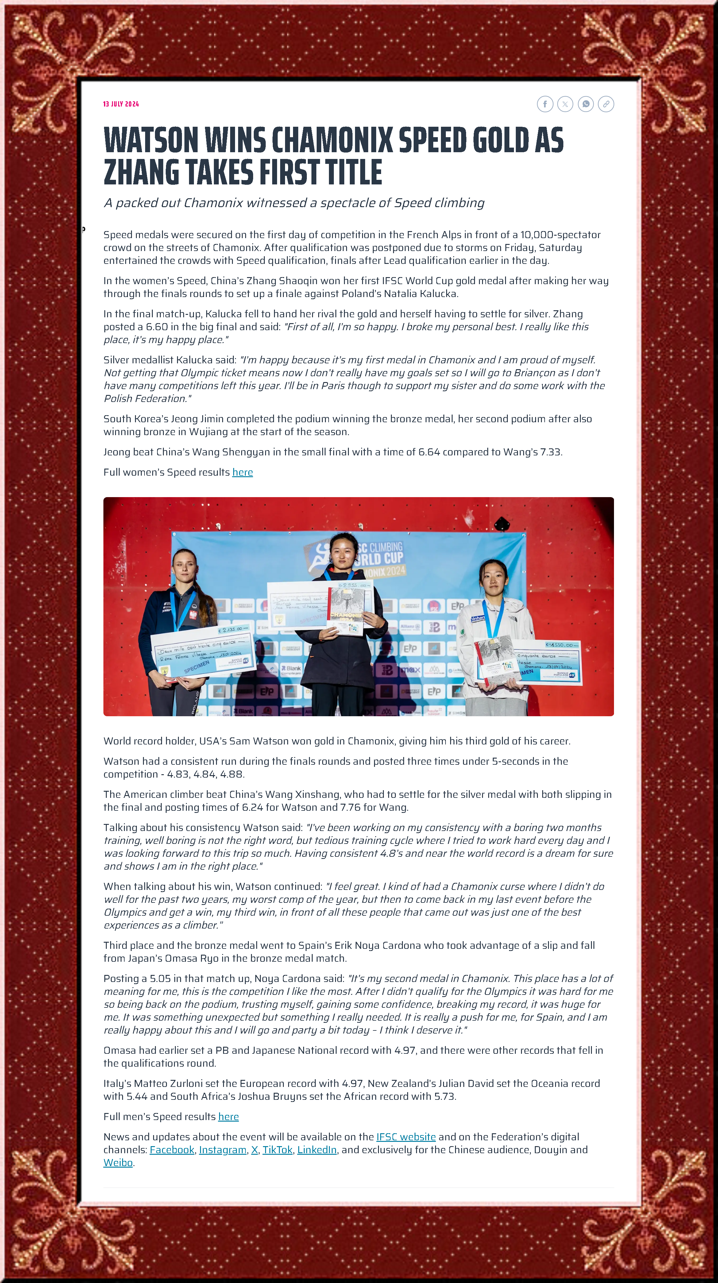 2024 年 IFSC 世界杯夏蒙尼站 夏慕尼 2024-07-14 速度 1