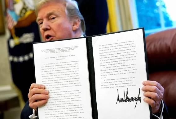 2018年1月,特朗普簽署對進口洗衣機和太陽能電池板征收關(guān)稅的總統(tǒng)令。路透社
