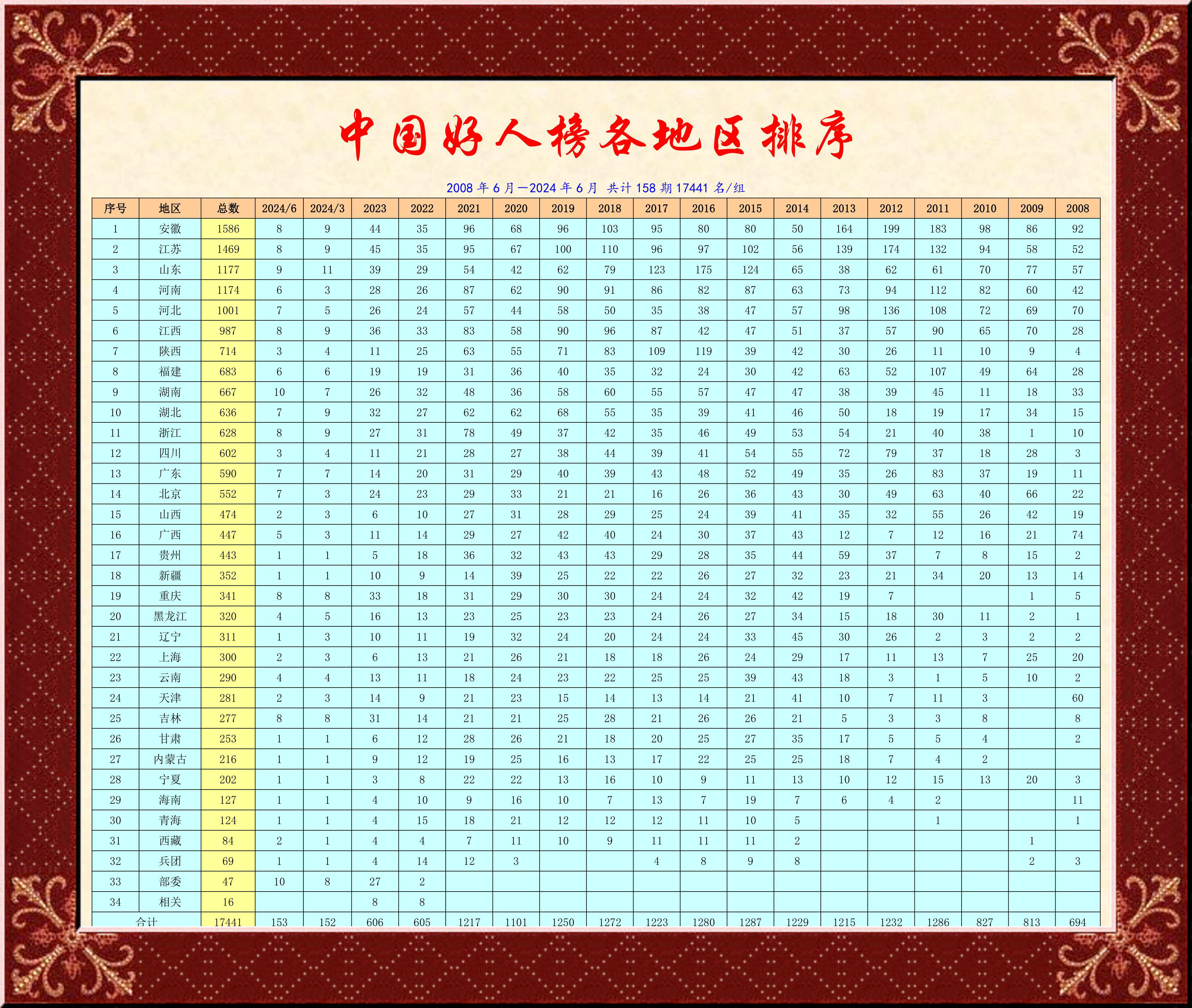 新華社太原7月30日電(記者李子怡)7月30日,2024年第二季度“中國好人榜”發(fā)布儀式暨全國道德模范與身邊好人現(xiàn)場交流活動在山西省大同市舉辦。經(jīng)各地推薦、網(wǎng)友評議和專家評審等環(huán)節(jié),共有153人(組)助人為樂、見義勇為、誠實(shí)守信、敬業(yè)奉獻(xiàn)、孝老愛親身邊好人光榮上榜。