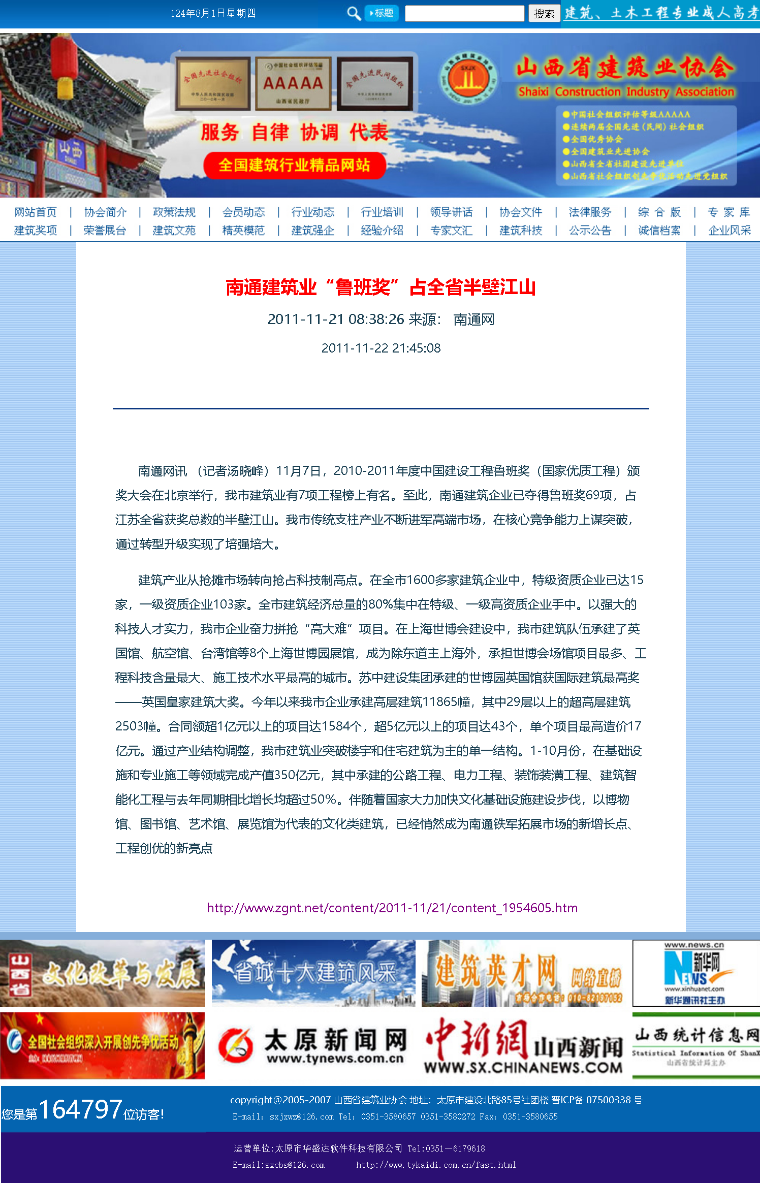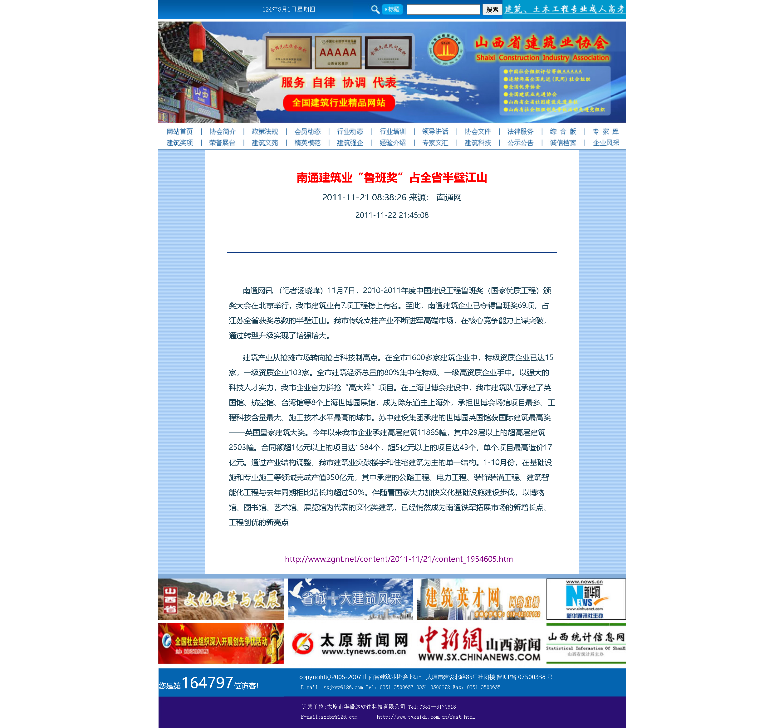 如今的南通,依然是全國建筑業(yè)萬億產(chǎn)值第一大市,他們究竟有什么秘訣呢?下面這則信息,是在十三年前在省建協(xié)網(wǎng)站上轉(zhuǎn)發(fā)的,那時候他們的規(guī)模已經(jīng)達(dá)到相當(dāng)高的水平,魯班獎69樽,可謂是全國屈指可數(shù)遙遙領(lǐng)先!現(xiàn)在已經(jīng)達(dá)到124樽,過百翻番所差無幾,不用五年必然實現(xiàn)!