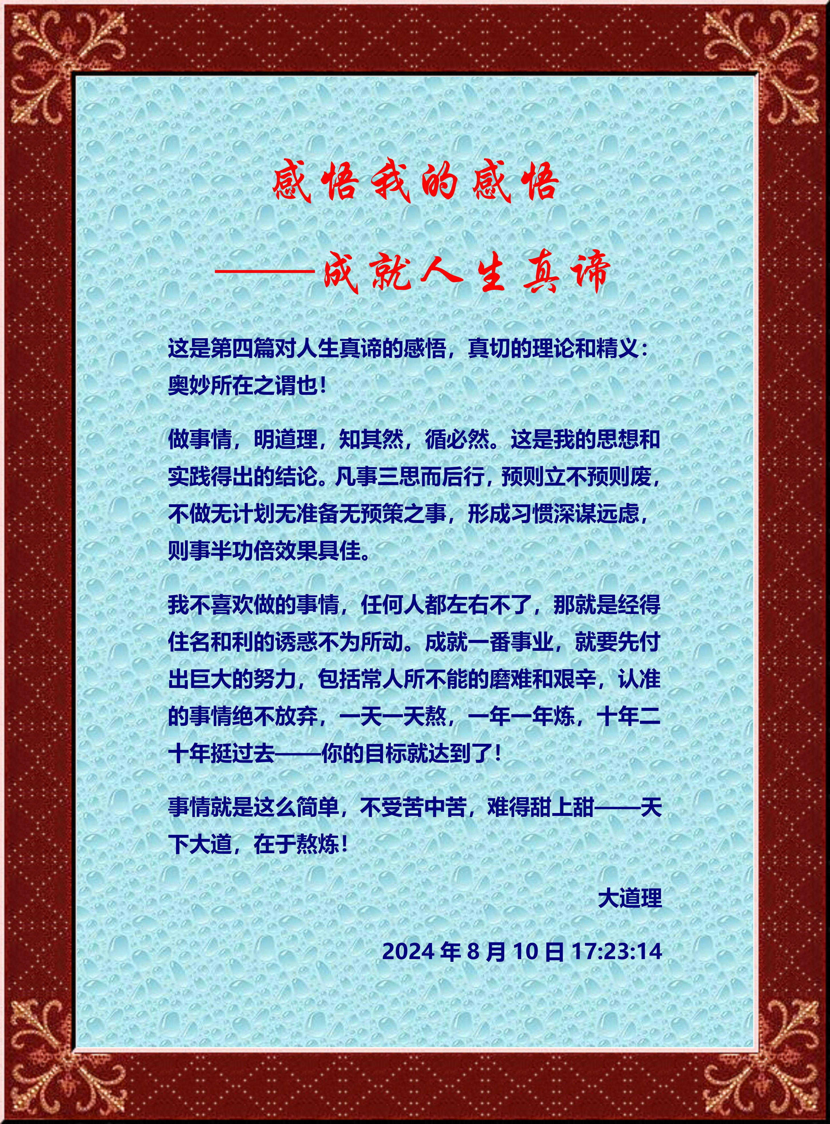 這是第四篇對人生真諦的感悟,真切的理論和精義:奧妙所在之謂也!