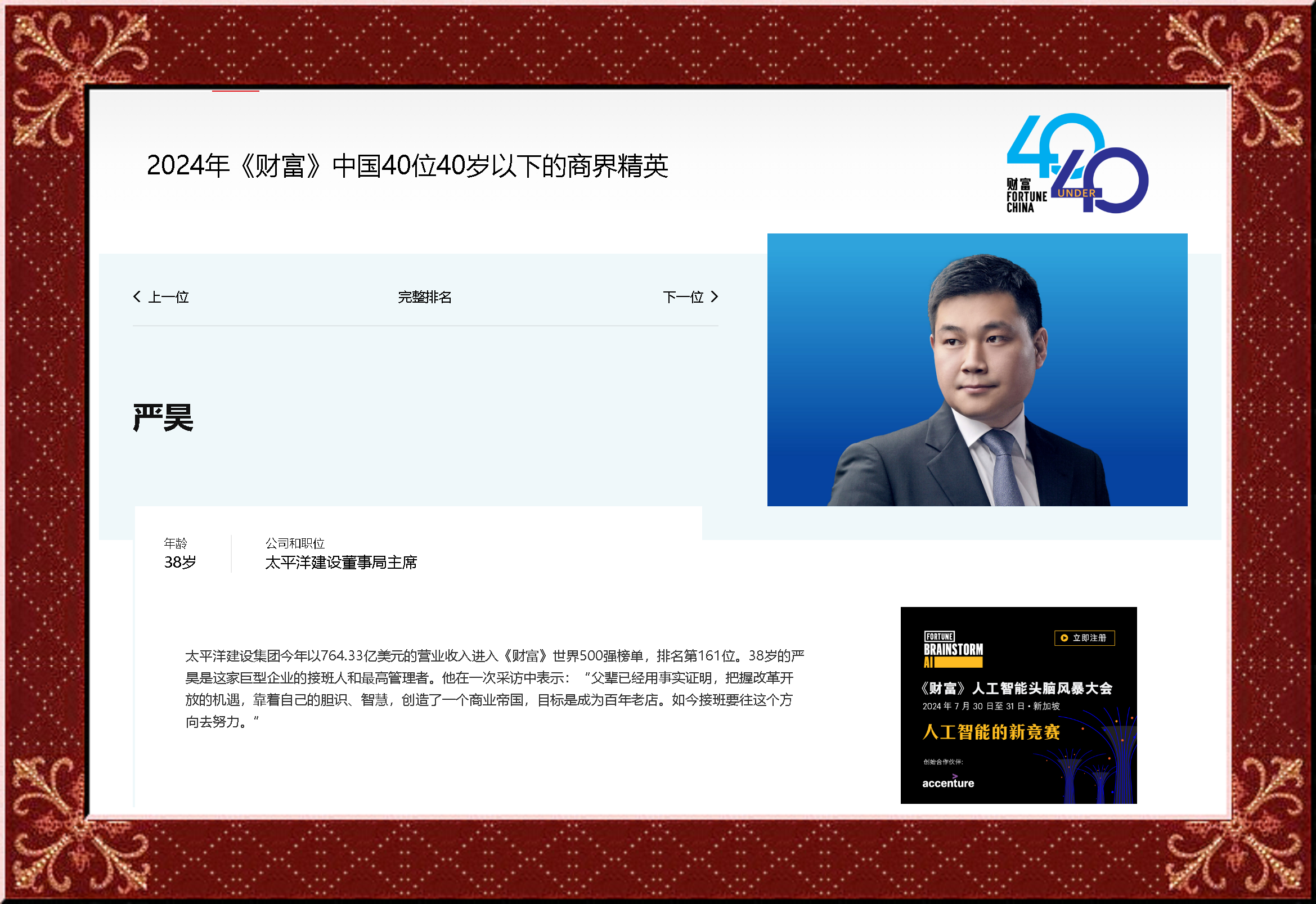在我們建筑行業(yè),我最認可和欣賞的行業(yè)領(lǐng)袖,太平洋建設(shè)集團新老兩代掌門人嚴介和嚴昊父子當屬世界第一!