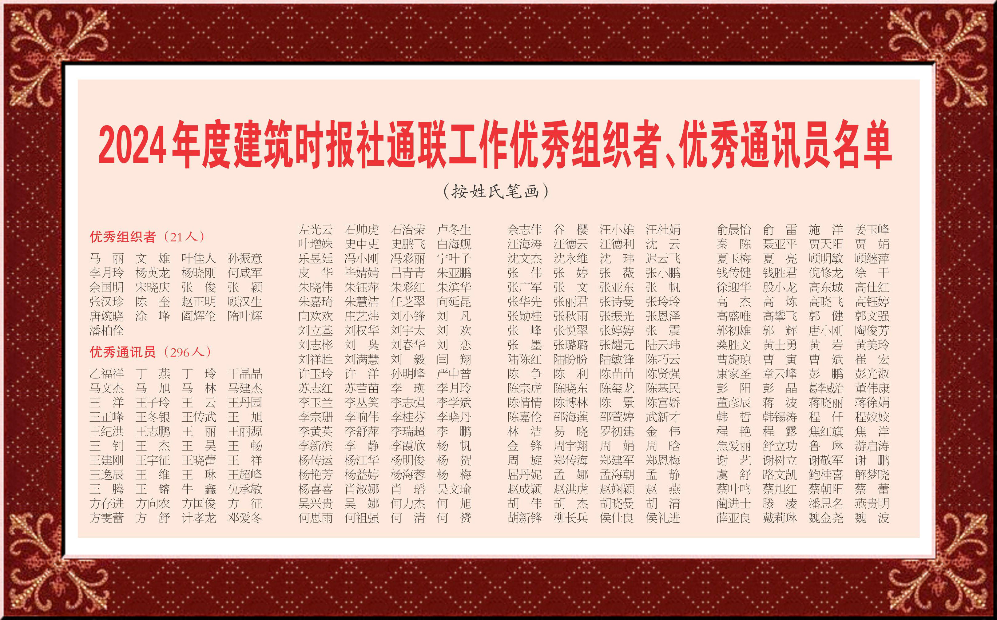 看了一年一度《建筑時(shí)報(bào)》2024年度建筑時(shí)報(bào)社通聯(lián)工作優(yōu)秀組織者、優(yōu)秀通訊員名單,一些熟悉的名字赫然在列,往事依然,感慨頗多。