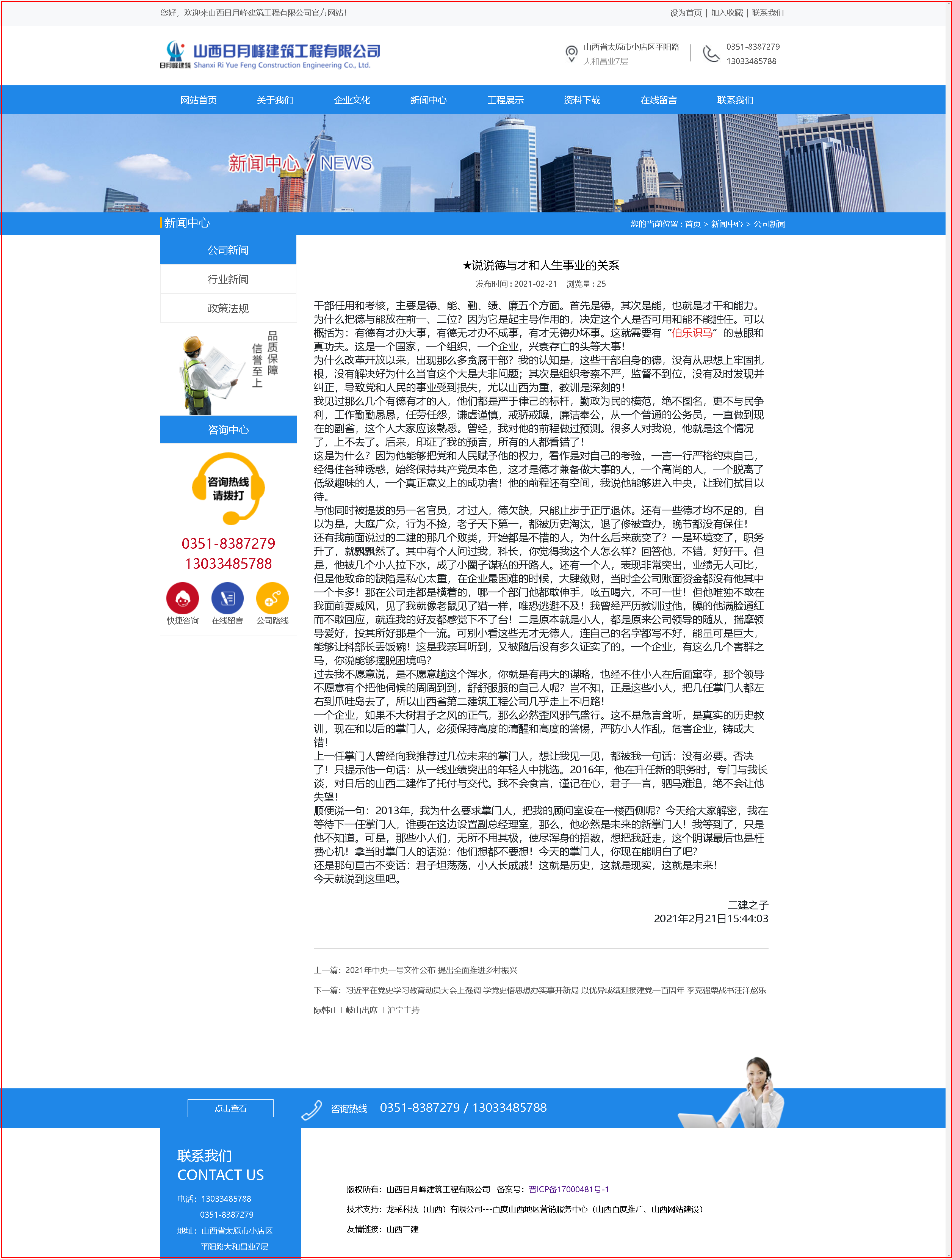 你注意到了沒有?華恒遠的網(wǎng)站與過去山西二建的網(wǎng)站外觀是不是如出一爐?是的,完全一樣!因為山西二建是我的,我是她忠誠的兒子!當(dāng)然,華恒遠就是山西二建的化身和繼續(xù)——大道和合大德通天!一件事情百年情節(jié)!