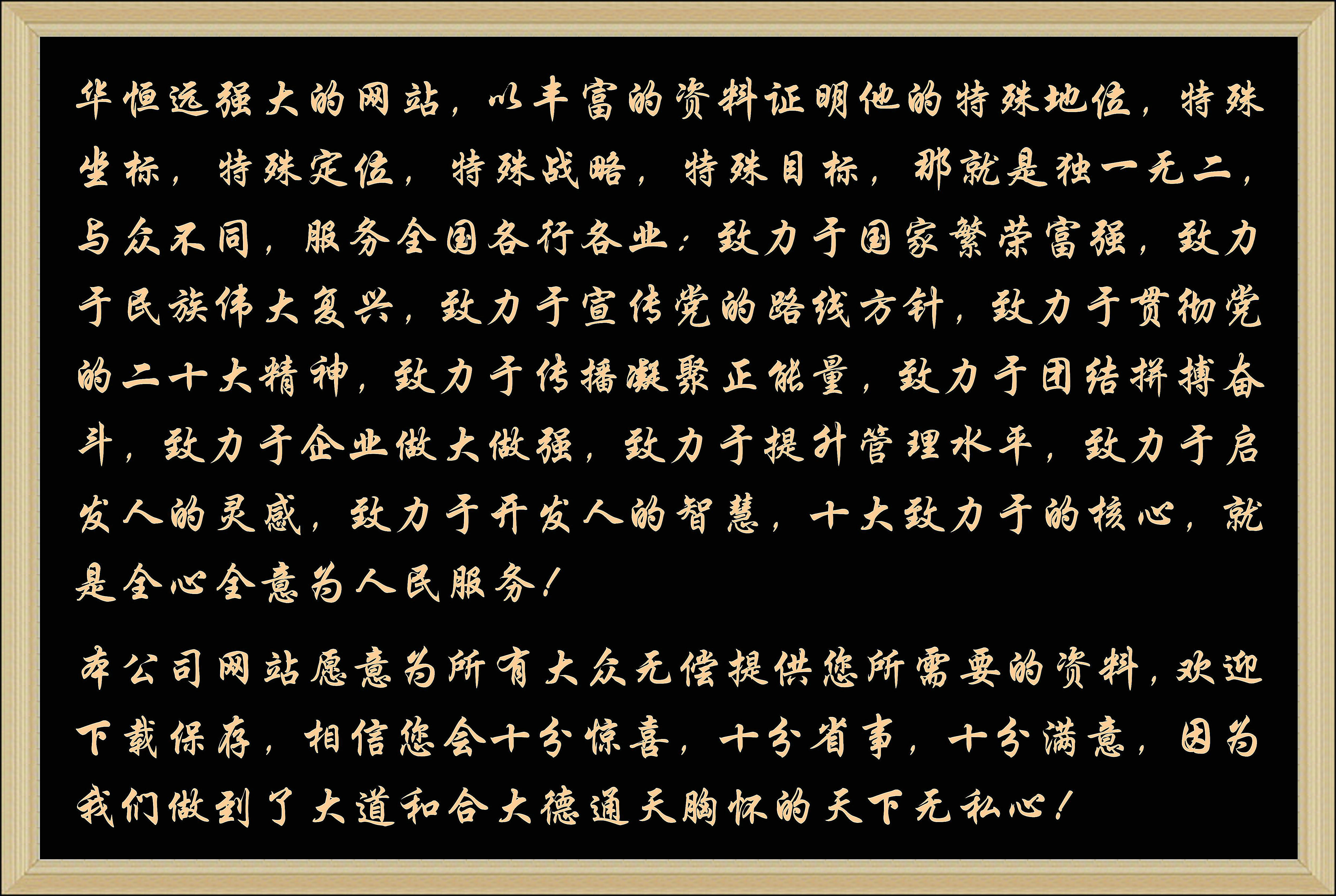 我們的網(wǎng)站,已經(jīng)把公司的意志發(fā)到全世界,未來的道路無比寬廣,希望之光會(huì)照亮企業(yè)做大做強(qiáng)的前程和輝煌,這是上天(大自然)和國家民族的需要和華恒遠(yuǎn)永遠(yuǎn)的使命!
