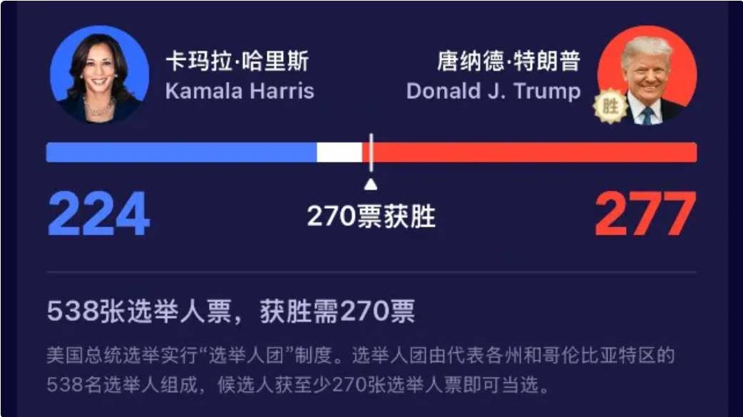 與此同時,金融市場也開始消化特朗普獲勝的預(yù)期,美元、美國國債收益率、比特幣以及特朗普媒體與科技集團的股價在盤后交易中大幅上漲。