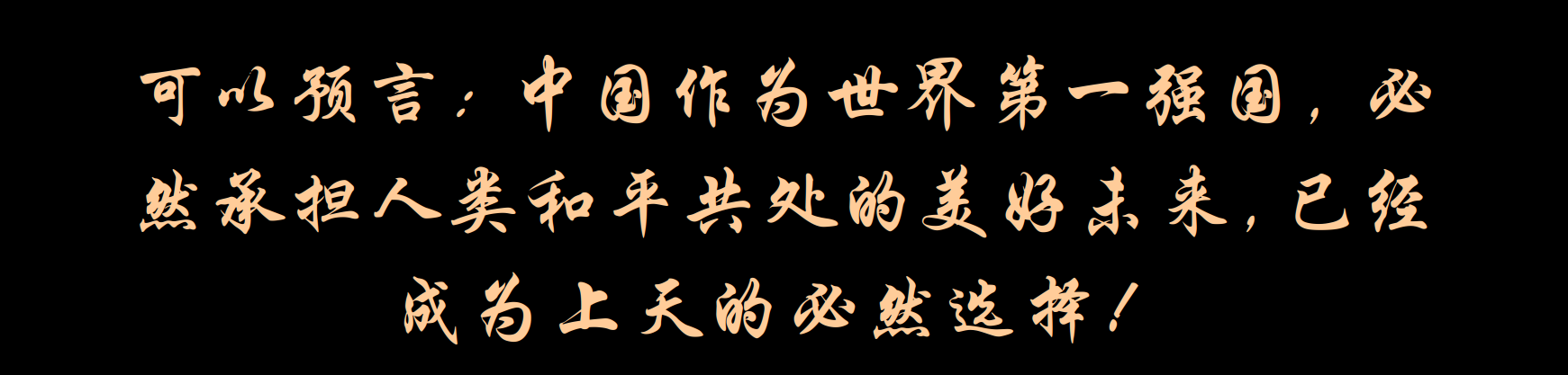 可以預(yù)言:中國作為世界第一強(qiáng)國,必然承擔(dān)人類和平共處的美好未來,已經(jīng)成為上天的必然選擇!