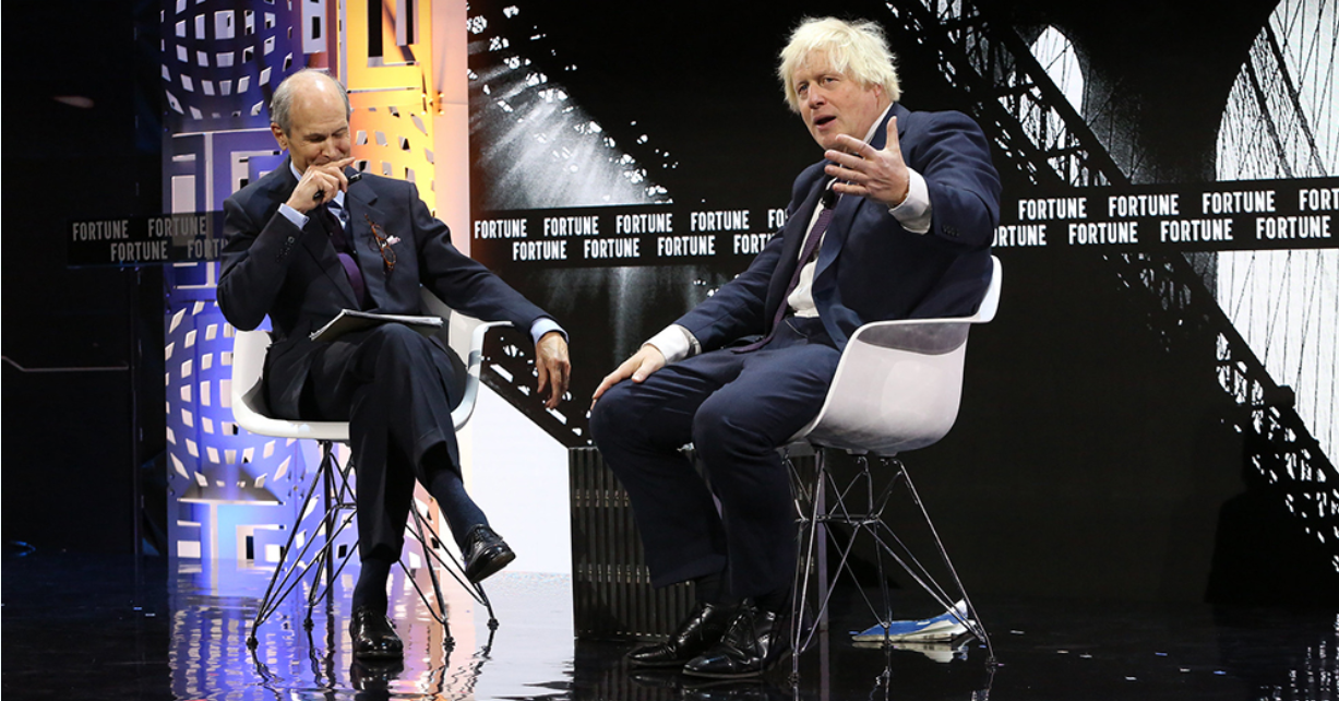 11月11日在紐約舉辦的《財富》全球論壇上,《財富》雜志的編輯杰夫·科爾文與英國第55任首相鮑里斯·約翰遜進行了一次長達半小時的現(xiàn)場對話。