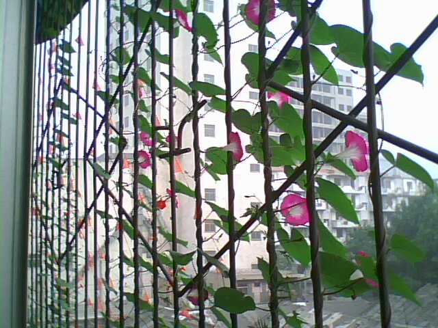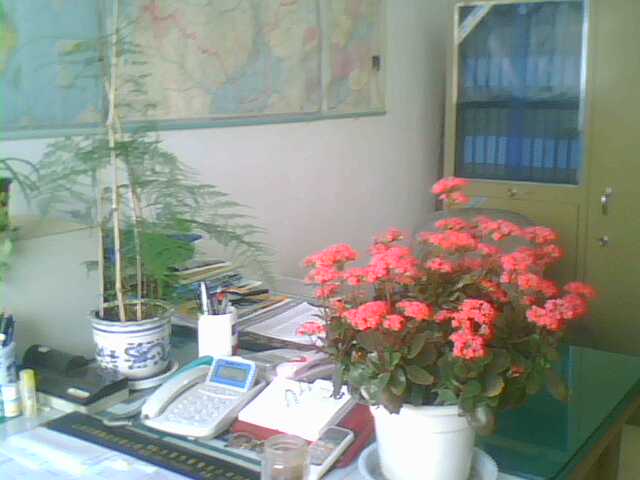 在建筑業(yè)協(xié)會時我的辦公桌和窗外種植的花花草草