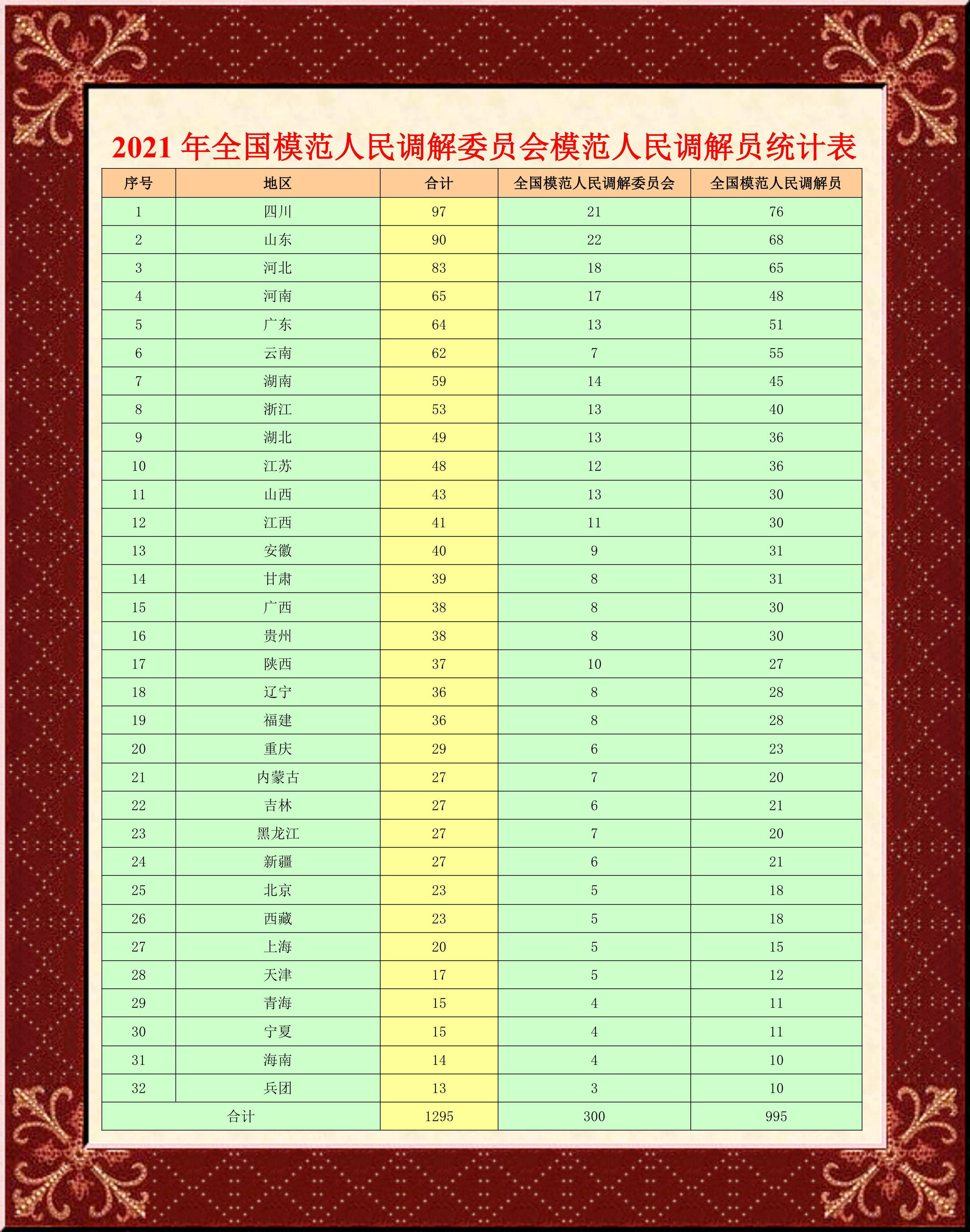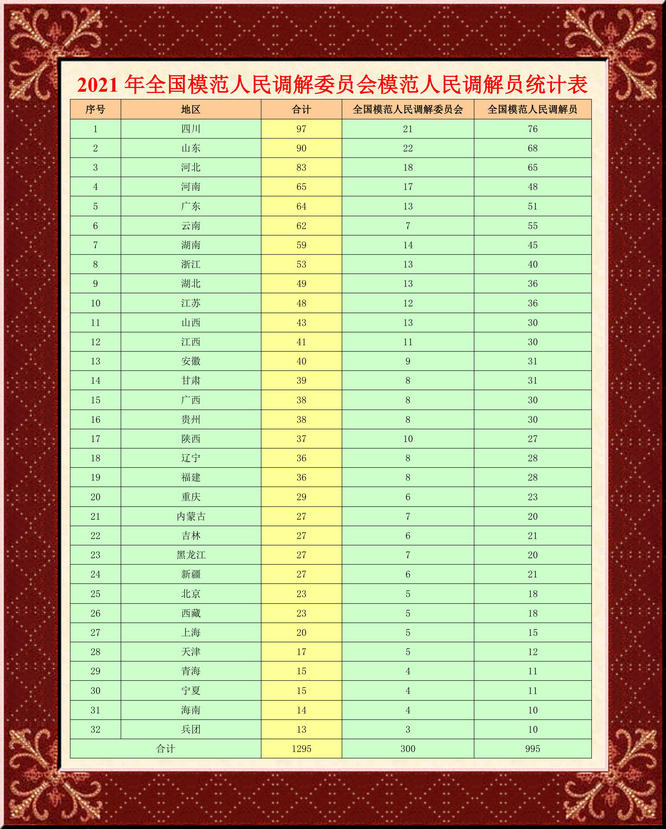 司法部關(guān)于表彰全國模范人民調(diào)解委員會(huì)模范人民調(diào)解員的決定
