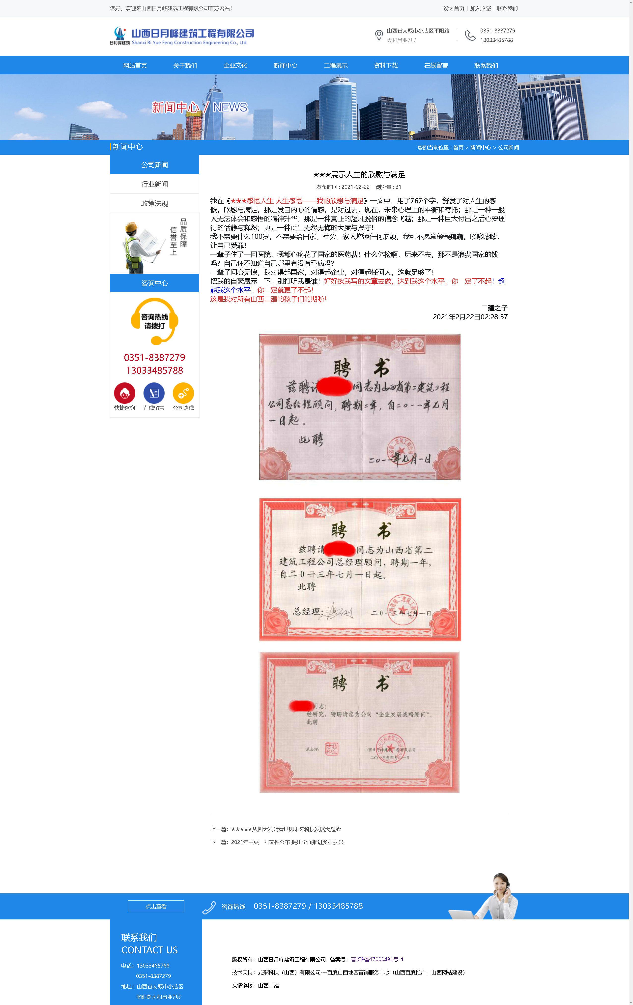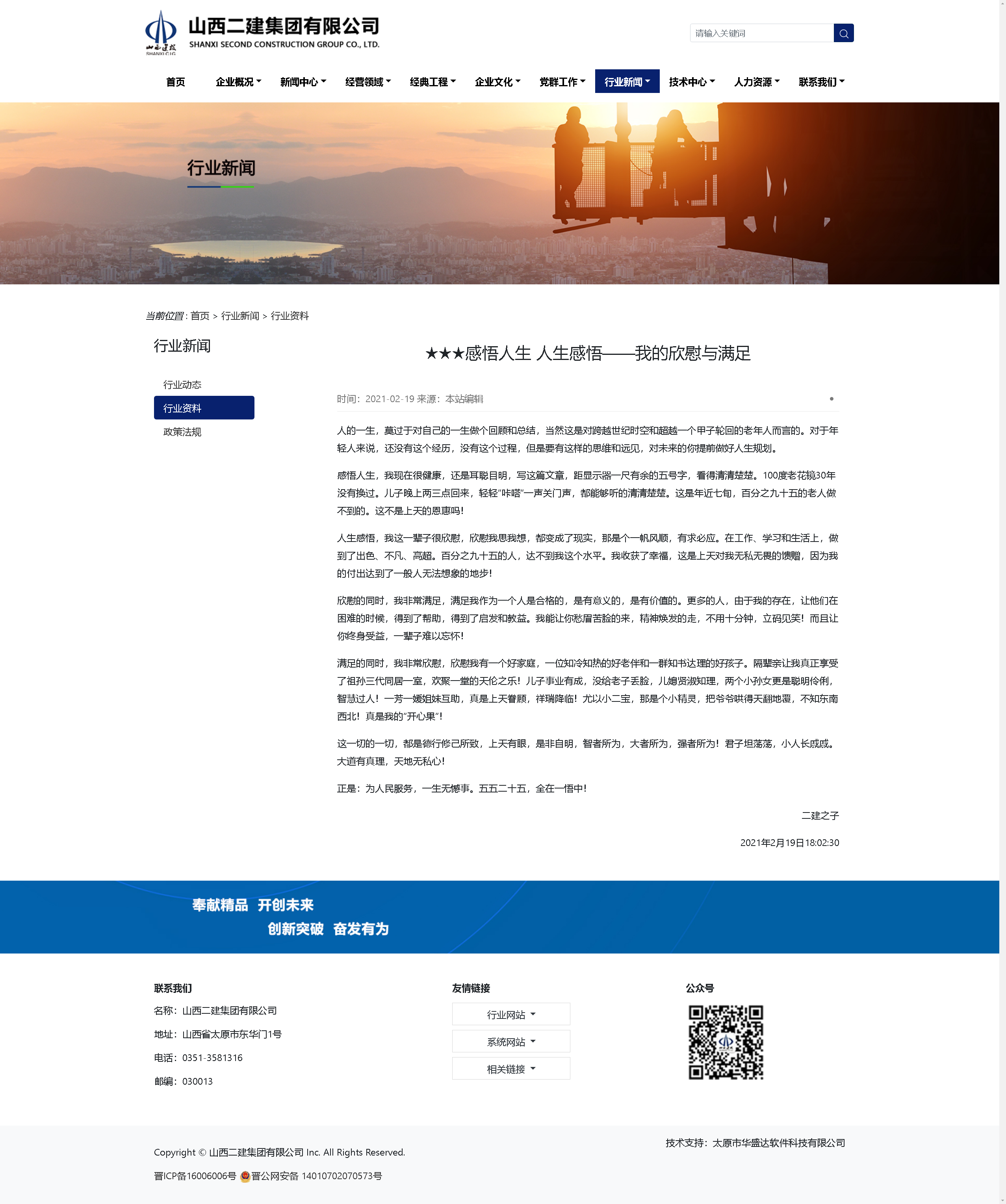 然而,最讓我感到驕傲和自豪的是,上天成就了我的愿望,成就了我的人生,那就是在我的母企面臨危機的時候,毫不猶豫義無反顧參與了成就山西二建集團有限公司的大翻身,找回了我們企業(yè)昔日的尊嚴和榮譽!之后,在輔佐楊總成就未來的過程中,又有了新的目標(biāo)和新的使命,成就上天安排的中華永恒久遠的華恒遠!