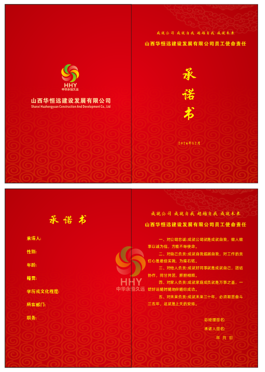 承諾五言,五福臨門。上天賜福,福滿人間。忠誠企業(yè),超越自我。