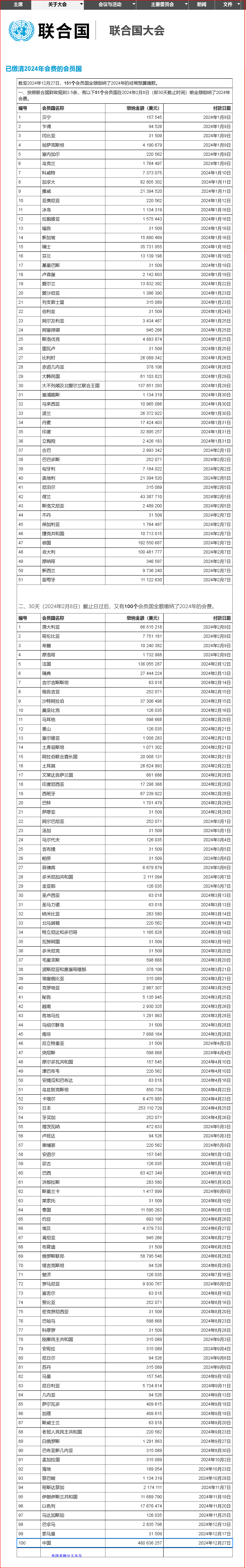 截至2024年12月27日,151個(gè)會(huì)員國(guó)全額繳納了2024年的經(jīng)常預(yù)算攤款。