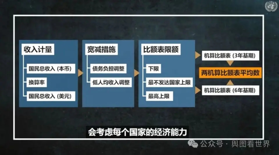 聯(lián)合國(guó)會(huì)費(fèi)分?jǐn)偙壤咳晷抻喴淮?,主要按照?jīng)濟(jì)規(guī)模和人均GNI來分?jǐn)偅罡?2%,最低0.001%。若某個(gè)國(guó)家的人均GNI或人均GDP與全球人均水平相當(dāng)?shù)脑挘涑袚?dān)的聯(lián)合國(guó)會(huì)費(fèi)比例就與其經(jīng)濟(jì)規(guī)模在全球的比例大體一致。發(fā)達(dá)經(jīng)濟(jì)體,其人均GNI或人均GDP是全球人均水平的數(shù)倍,他們承擔(dān)的會(huì)費(fèi)比例也應(yīng)是自身經(jīng)濟(jì)規(guī)模在全球占比的數(shù)倍。低收入國(guó)家,因?yàn)槿司鵊NI偏低,分配到的會(huì)費(fèi)比例由此被拉低。中國(guó)人均GNI和人均GDP基本達(dá)到了全球平均水平,所以我國(guó)承擔(dān)的聯(lián)合國(guó)會(huì)費(fèi)接近“中國(guó)經(jīng)濟(jì)規(guī)模在全球的比例”。而印度,人均GNI只是全球人均水平的五分之一,承擔(dān)的會(huì)費(fèi)比例也要成倍縮減。