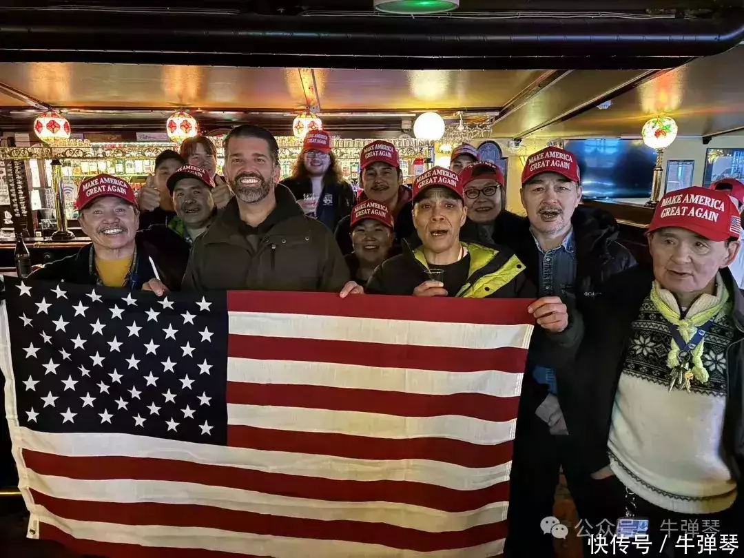 特朗普在發(fā)圖的時候,他的兒子小特朗普正在格陵蘭島旅行,積極宣傳特朗普的主張,還和當?shù)厝斯餐弥绹鴩旌嫌啊?br />