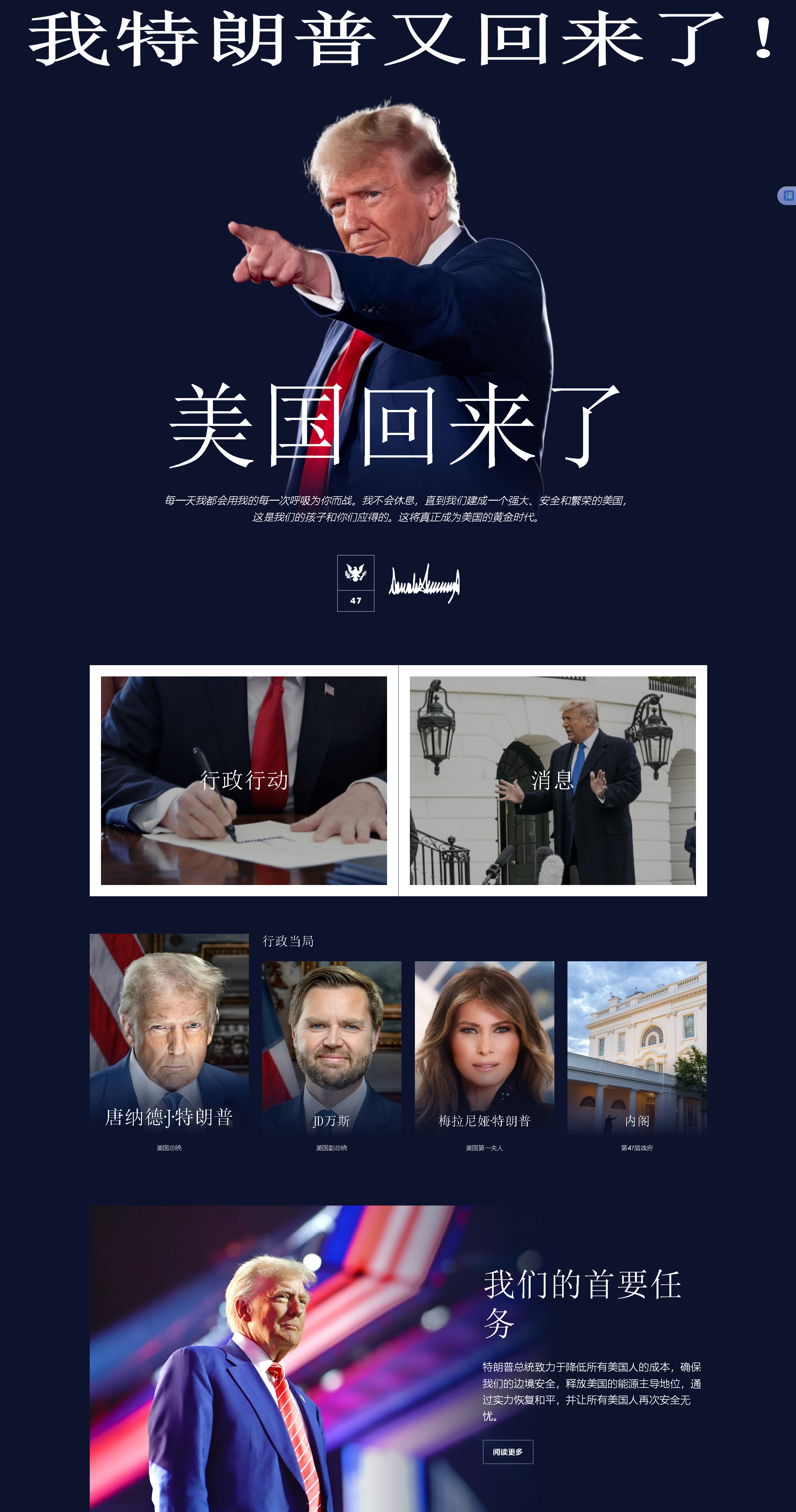 特朗普二次入主白宮,與其說“美國(guó)回來了”,倒不如說“特朗普又回來了”!回來就好,回來做幾件正經(jīng)事,把諾貝爾和平獎(jiǎng)拿到手,這才是美國(guó)歷史上的正經(jīng)事!——特朗普努力吆!