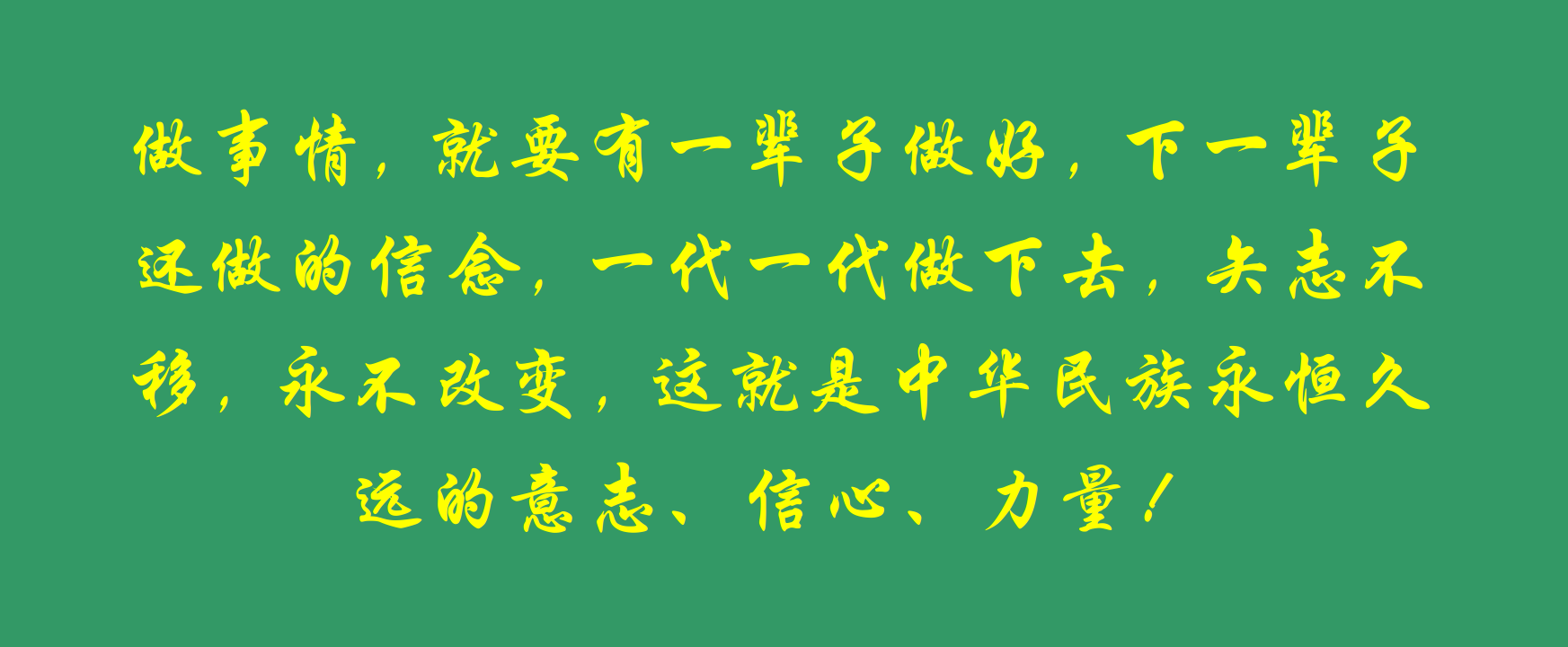 做事情,就要有一輩子做好,下一輩子還做的信念,一代一代做下去,矢志不移,永不改變,這就是中華民族永恒久遠(yuǎn)的意志、信心、力量!