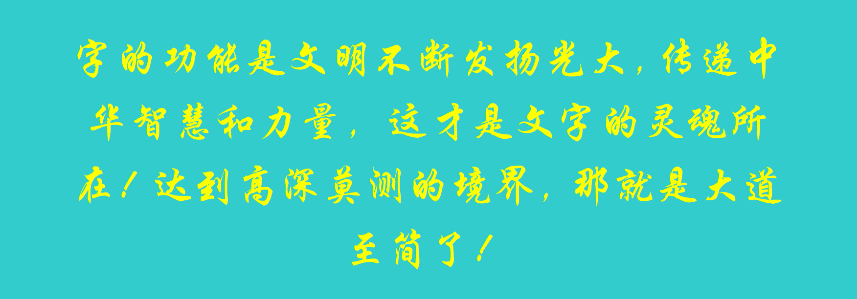總而言之,字的功能是文明不斷發(fā)揚(yáng)光大,傳遞中華智慧和力量,這才是文字的靈魂所在,達(dá)到高深莫測(cè)的境界,那就是大道至簡(jiǎn)了!什么是大道?把握規(guī)律!什么是至簡(jiǎn)?一錘定音!