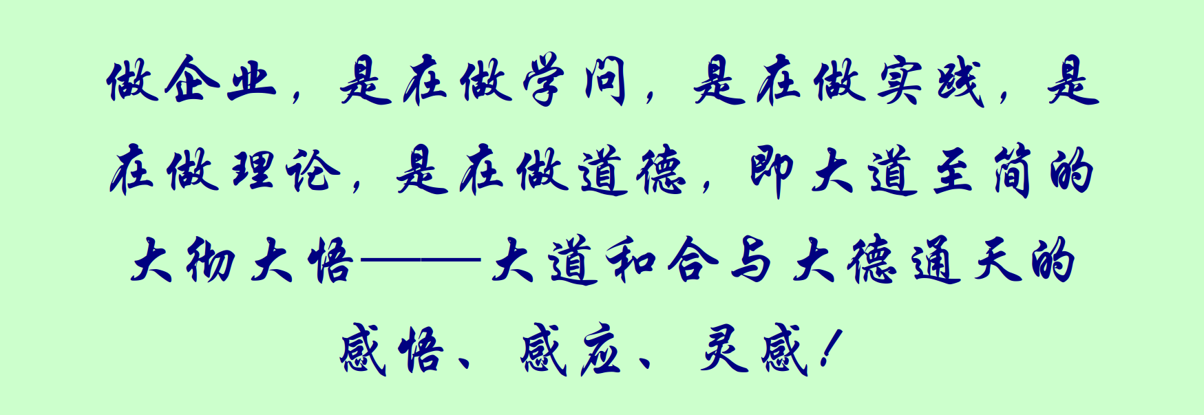 做企業(yè),是在做學(xué)問,是在做實(shí)踐,是在做理論,是在做道德,即大道至簡(jiǎn)的大徹大悟——大道和合與大德通天的感悟、感應(yīng)、靈感!