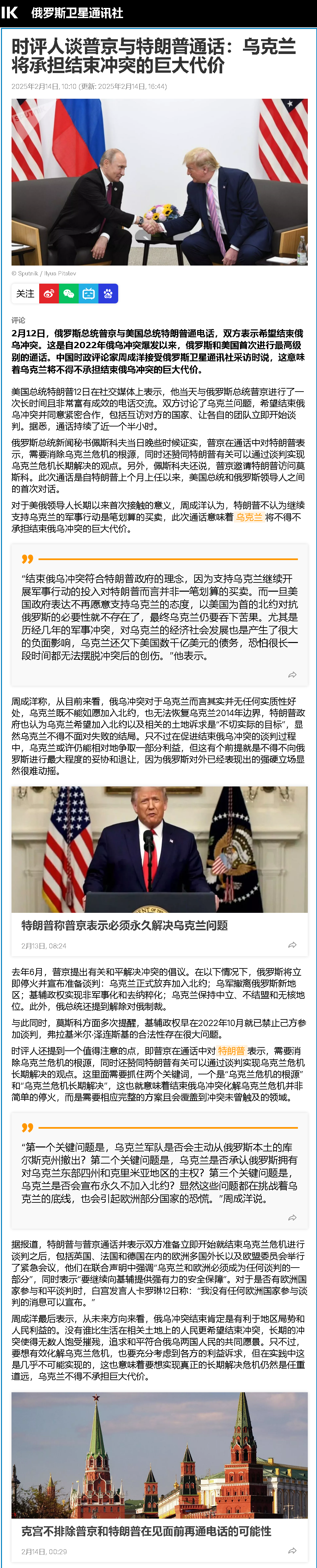 針對歐洲的不安,北約秘書長馬克·呂特15日在慕尼黑直言,如果歐洲想?yún)⑴c美國主導的談判,就必須提出確保烏克蘭和平的“良好建議”,“如果歐洲人想要有發(fā)言權,那就讓自己具有影響力”。