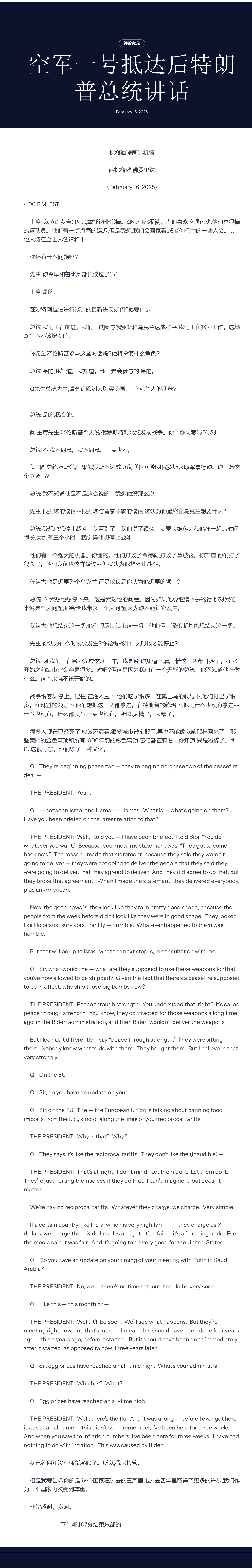 總統(tǒng):通過(guò)力量實(shí)現(xiàn)和平。你懂的,對(duì)吧?它被稱為通過(guò)力量的和平。你知道,很久以前,在拜登政府中,他們簽訂了這些武器的合同,然后拜登就不愿意提供這些武器了。