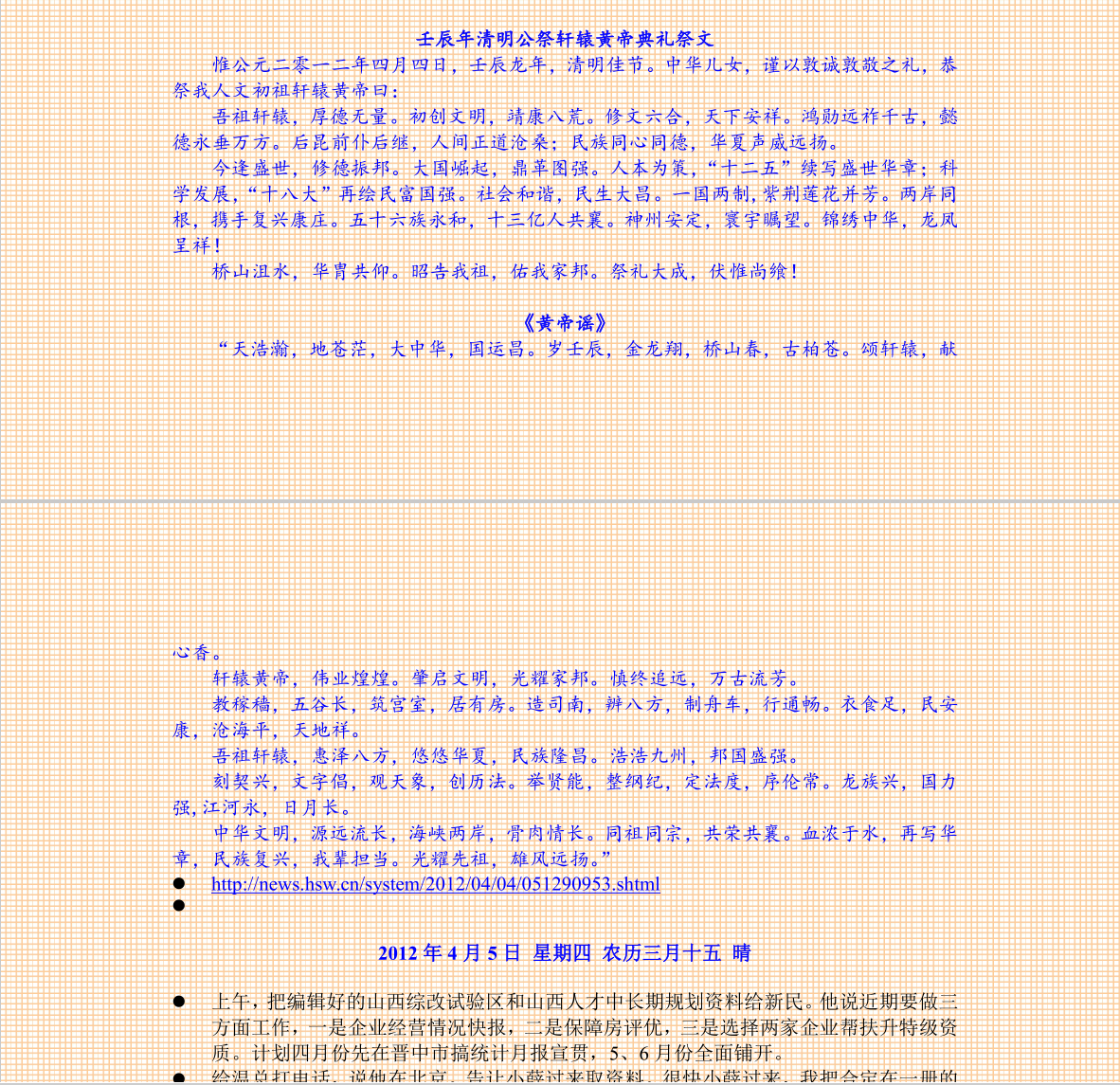 惟公元二零一二年四月四日,壬辰龍年,清明佳節(jié)。中華兒女,謹(jǐn)以敦誠敦敬之禮,恭祭我人文初祖軒轅黃帝曰: