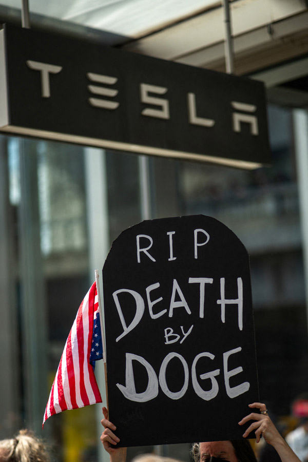 但這種“大刀闊斧”的改革也引發(fā)強(qiáng)烈不滿(mǎn),使馬斯克的特斯拉公司成為眾矢之的。3月29日,一場(chǎng)聲勢(shì)浩大的“打倒特斯拉”(Tesla Takedown)抗議活動(dòng)在美國(guó)、加拿大以及歐洲上演。成千上萬(wàn)名抗議者走上街頭,反對(duì)馬斯克及其領(lǐng)導(dǎo)的DOGE削減人道主義援助、關(guān)閉聯(lián)邦機(jī)構(gòu)并解雇政府雇員的舉措。