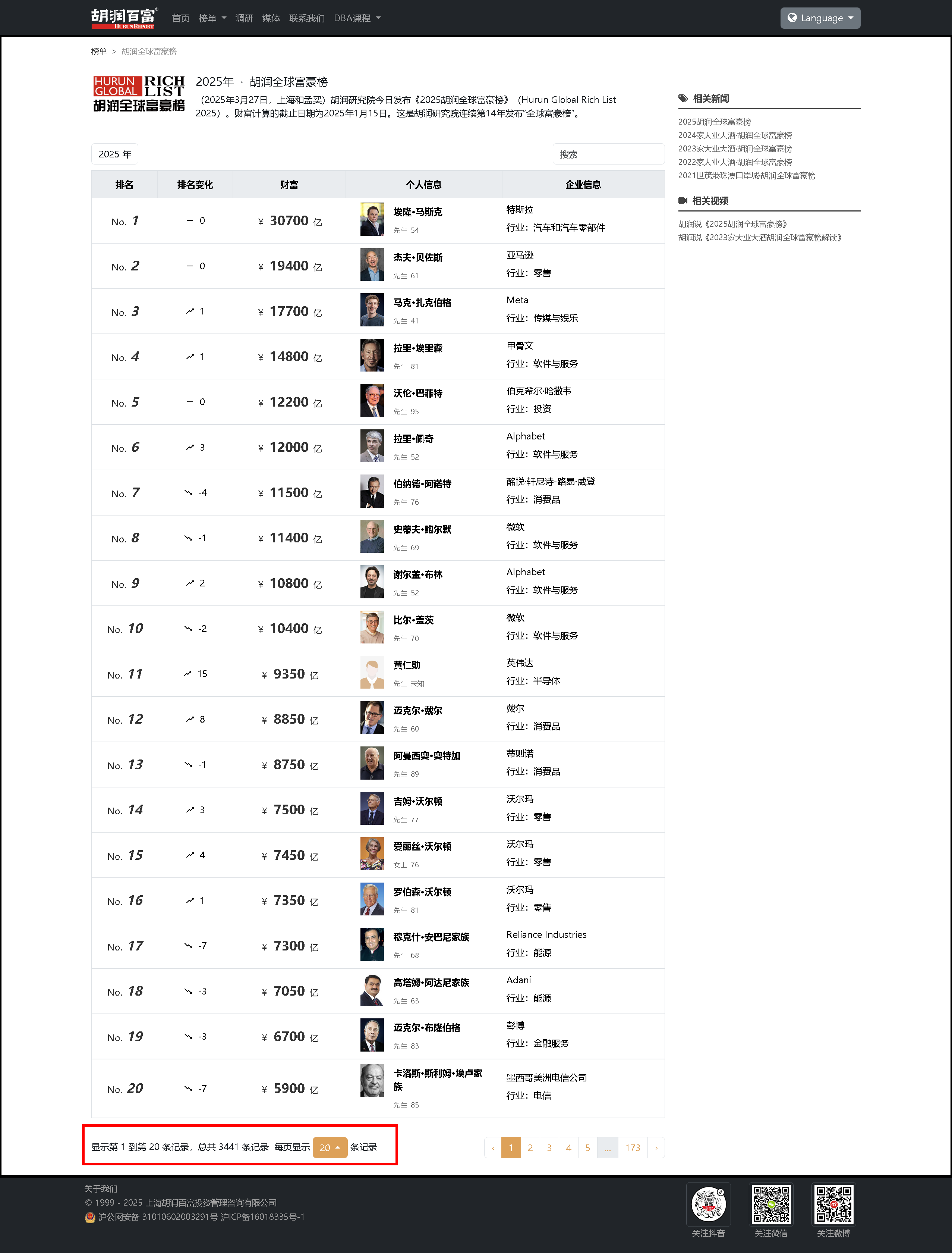 感應(yīng)今天《胡潤(rùn)》公布2025年3441位全球富豪榜全名單,正中我意,下載編輯,及時(shí)刊出,送給大家,一飽眼福!