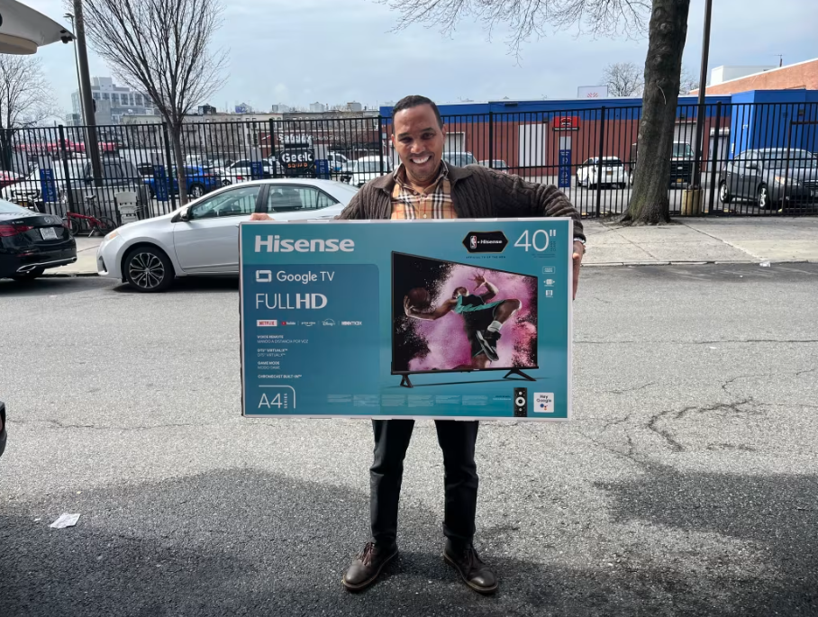 50歲的紐約市民佩格羅(Noel Peguero)聽(tīng)到關(guān)稅消息后,便立即采取了行動(dòng)。從4月2日晚上到3日早上,他已經(jīng)豪擲3000美元購(gòu)買(mǎi)電子產(chǎn)品、汽車(chē)零件、園藝工具和其他居家用品。“現(xiàn)在是時(shí)候大采購(gòu)了?!迸甯窳_一邊說(shuō),一邊把一家商店內(nèi)最后一臺(tái)中國(guó)品牌海信的40英寸電視機(jī)裝進(jìn)車(chē)廂。