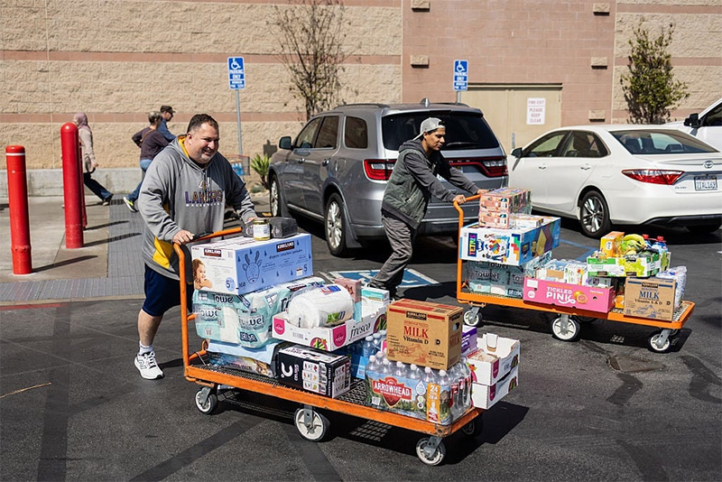 連日來(lái),眾多美國(guó)民眾搶購(gòu)和囤積日用品。 美媒