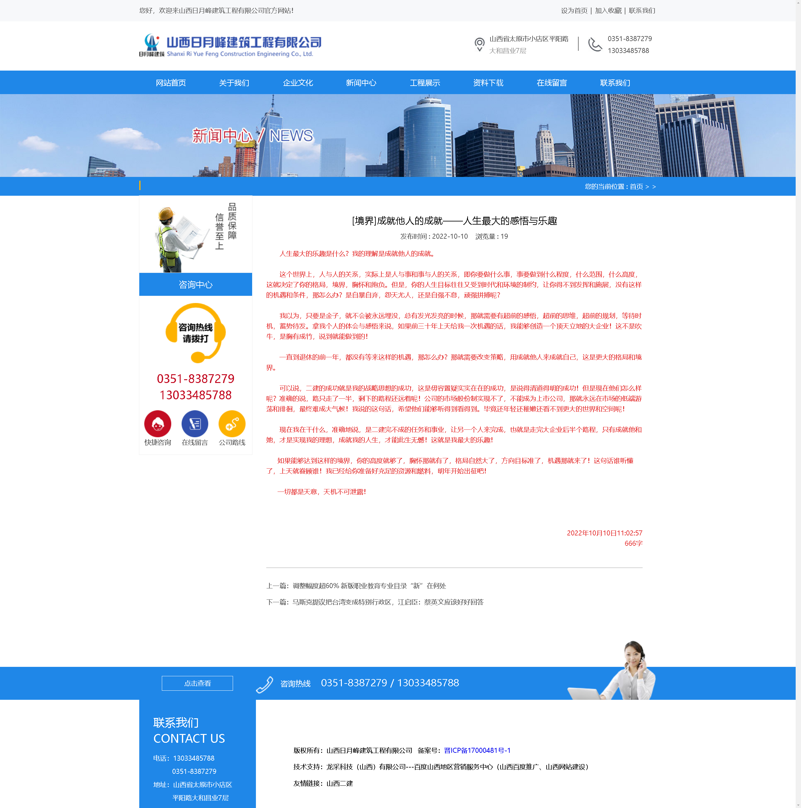 可惜幾任掌門人沒有悟性,把上天賦予他們的機遇錯失實在令人惋惜!山西安裝的成功,正是企業(yè)發(fā)展戰(zhàn)略的成功,正是企業(yè)文化核心競爭力的成功,正是敢為人先拼搏進取的成功!