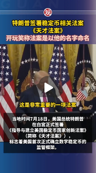 當?shù)貢r間7月18日,美國總統(tǒng)特朗普在白宮正式簽署《指導與建立美國穩(wěn)定幣國家創(chuàng)新法案》(簡稱《天才法案》),標志著美國首次正式確立數(shù)字穩(wěn)定幣的監(jiān)管框架。