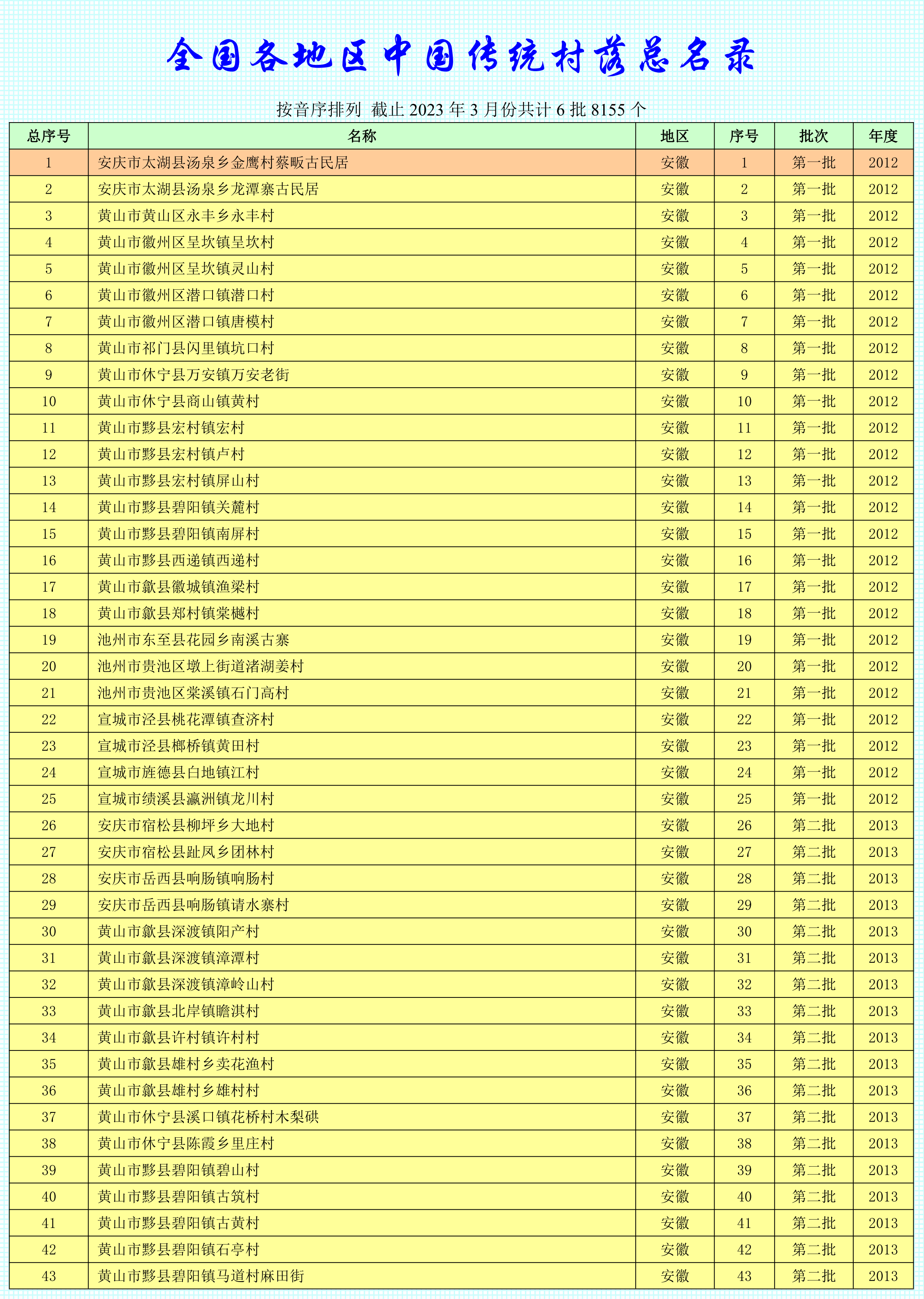 【行業(yè)資料】中國傳統(tǒng)村落名單1-6批8155個