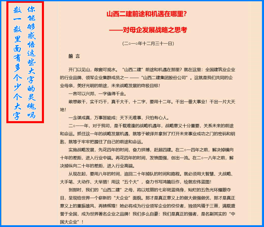 來(lái)到人世間,一人為大,二人為天,這是與生俱來(lái)的靈感和感悟。所以我的文章離不了這個(gè)“大”字,大格局,大境界,大覺(jué)悟,大手筆,大魄力!