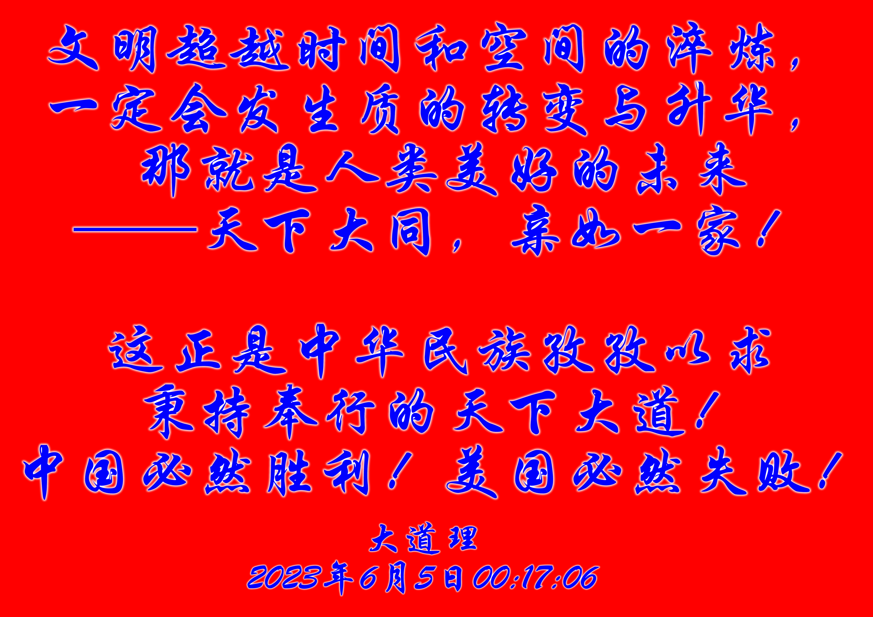 這正是:世界格局發(fā)生根本性變化——東西方文明博弈的天平傾向東方!中華民族孜孜以求秉持奉行的天下大道!中國(guó)必然勝利!美國(guó)必然失??!