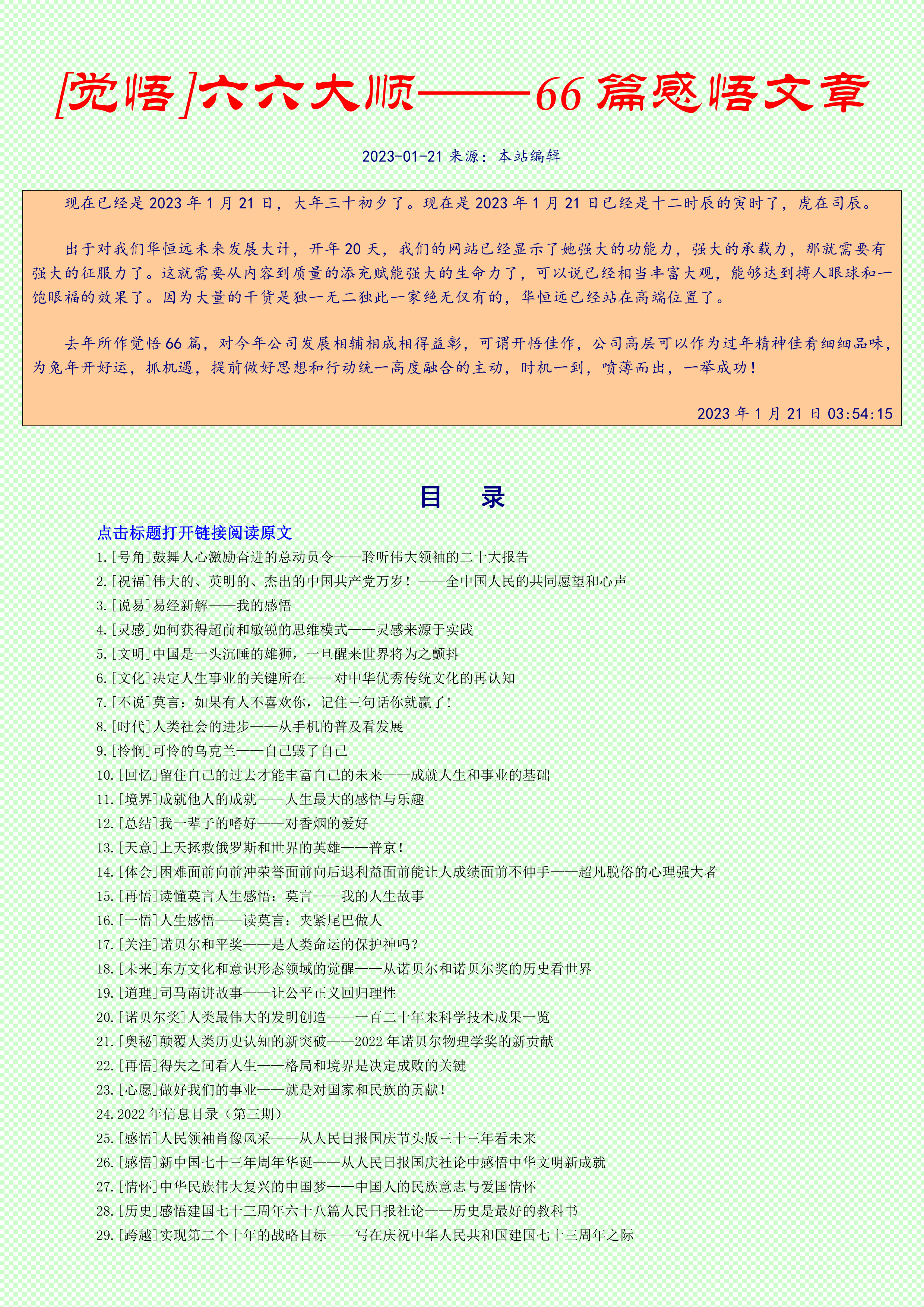 天下大道,糧食滿倉,瓜果飄香,國泰民安——2023年大吉之日!