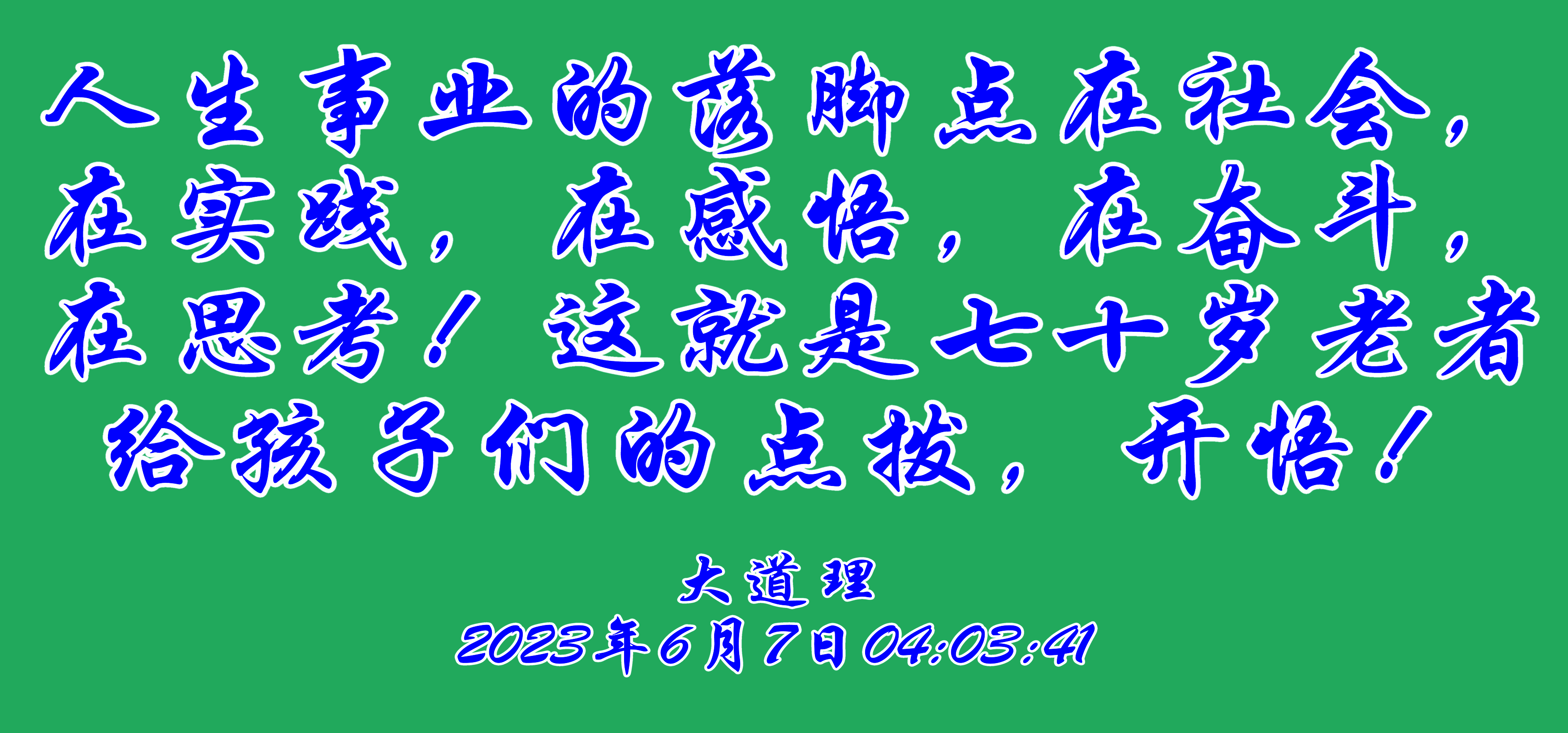 人生事業(yè)的落腳點(diǎn)在社會(huì),在實(shí)踐,在感悟,在奮斗,在思考!這就是七十歲老者給孩子們的點(diǎn)撥,開悟!