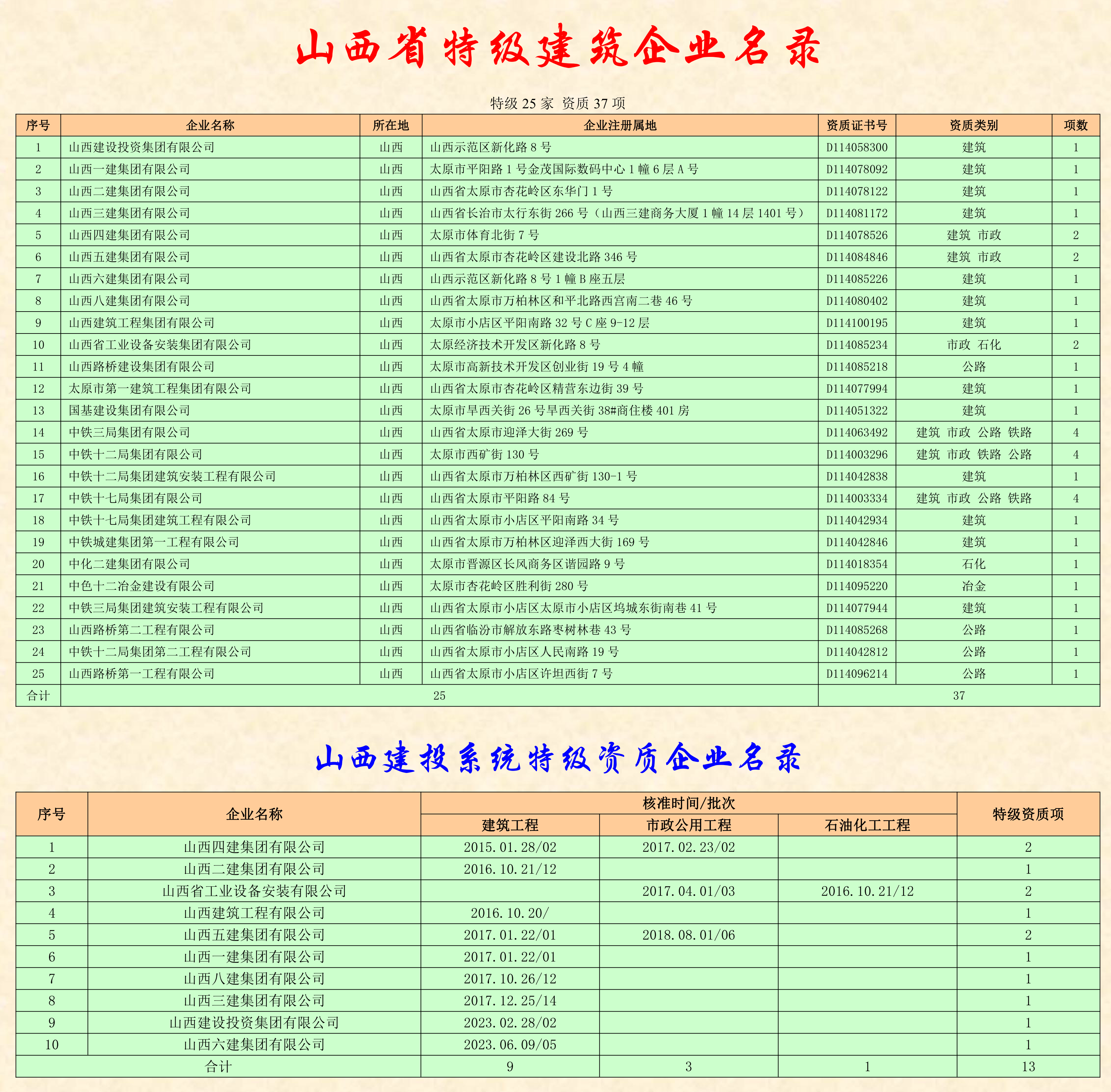 6 山西建設(shè)投資集團(tuán)有限公司 山西 建筑工程施工總承包特級 21 升級 第二批